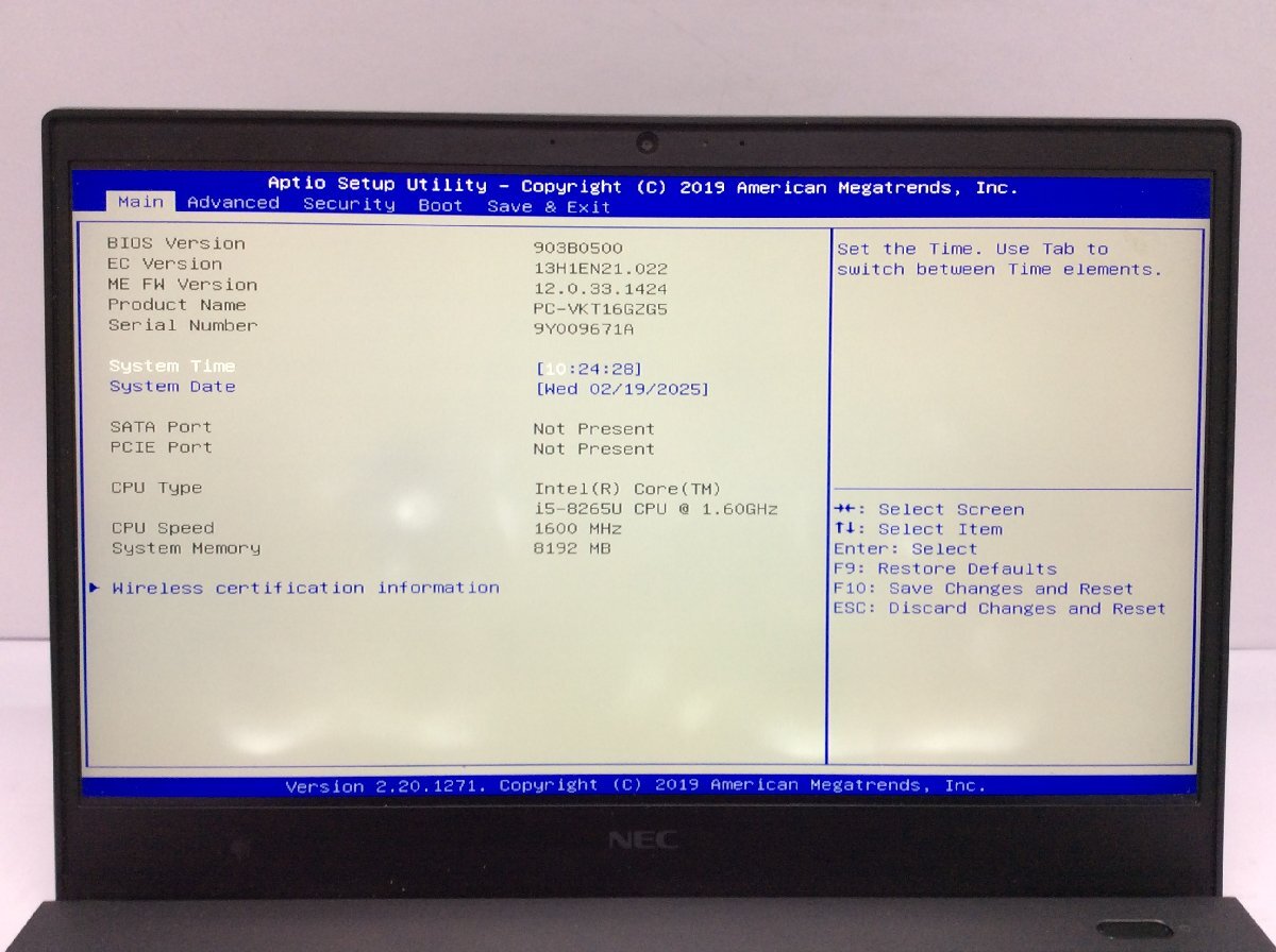 ジャンク/ NEC PC-VKT16GZG5 Intel Core i5-8265U メモリ8.19GB ストレージ無し 【K08651】