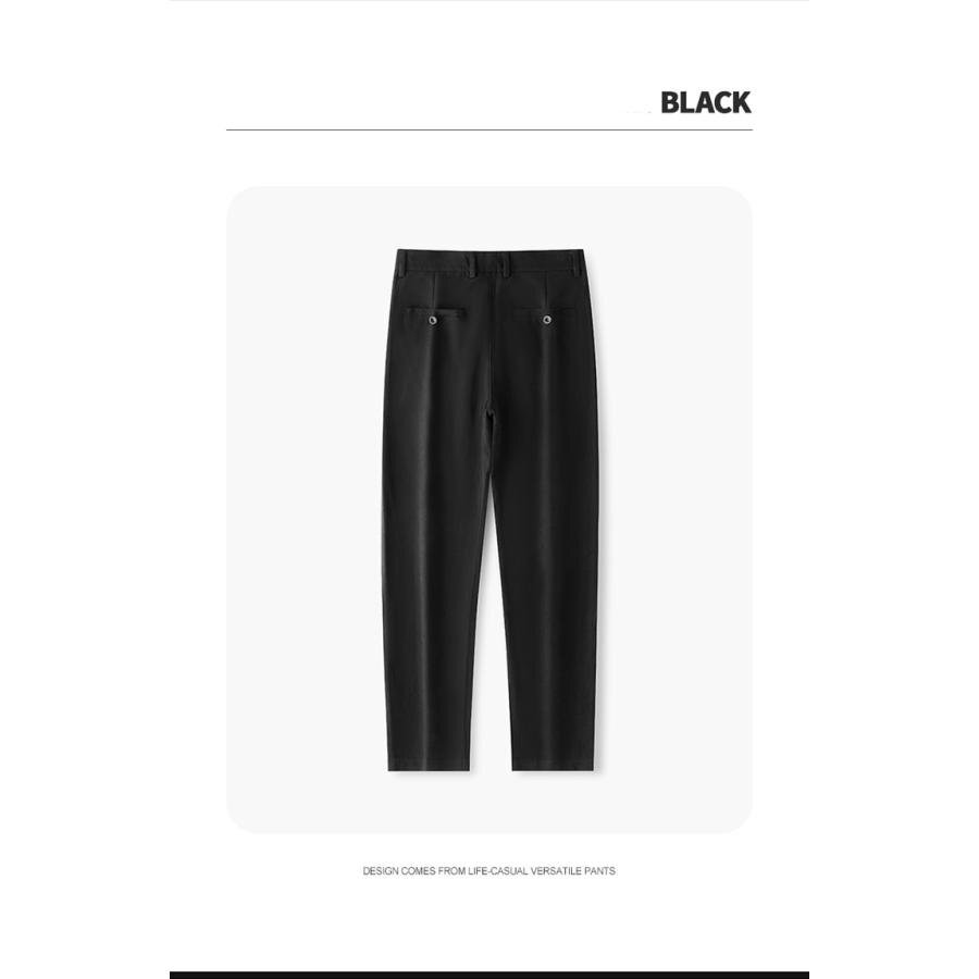 ビジネスシーンに大活躍する無地のスラックス。