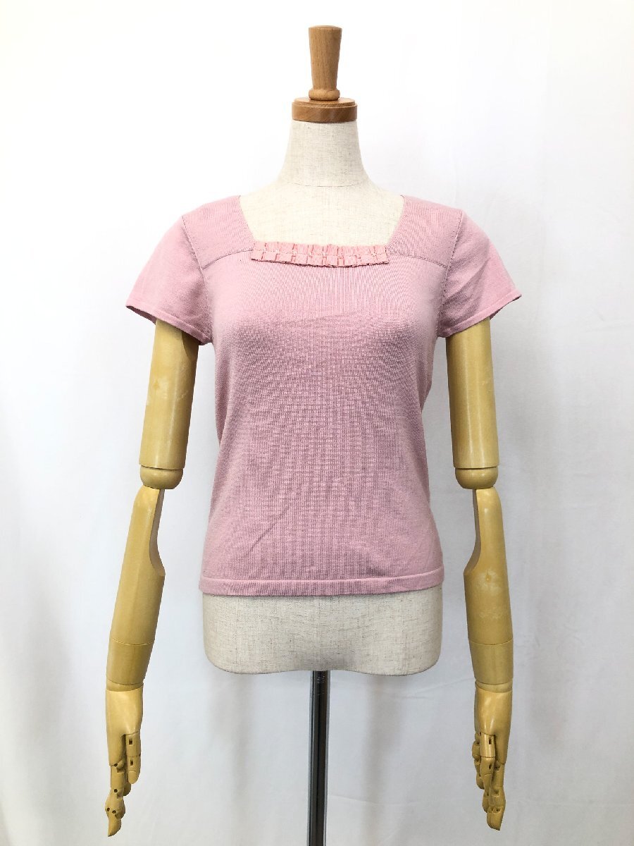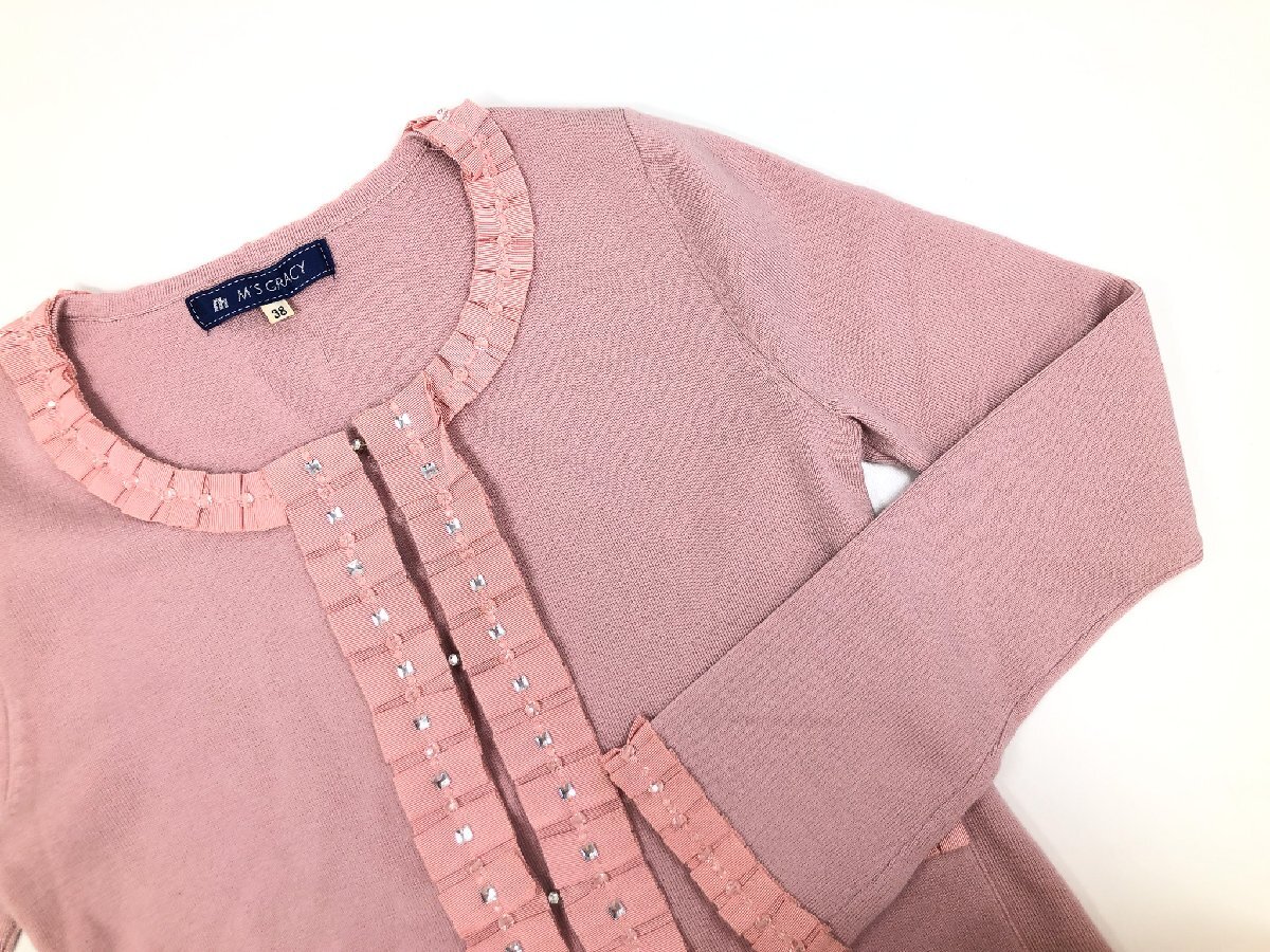 極美品【エムズグレイシー】ビジュー装飾 ニットアンサンブル カーディガン&半袖ニット (レディース) size38 ピンク MK-9528724◇33LN6087