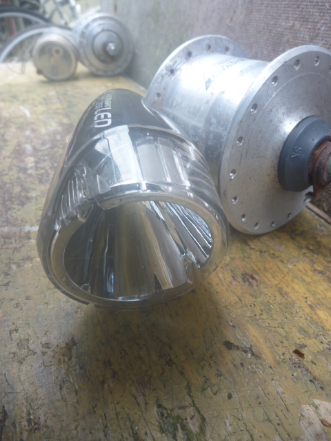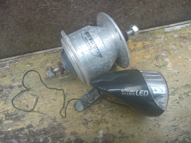| ★商品説明★ | ★携帯からご覧の方及び発送料を聞く方がいらっしゃいますが送料等発送情報等下にありますので最後までよくお読み下さい。 ★評価の悪い方及び新規の方のご入札は1度質問コーナーよりご連絡下さい。 ご連絡の無い方のご入札はイタズラ・トラブル防止の為此方の判断で削除する場合がありますご了承下さい。 ★宅配便発送分及びゆうパックの場合必ずお読み下さい★ ※集荷・配達不可地域につきましては、予告無く変更となる可能性がございます。 お急ぎの方、遅延にご理解いただけない方は入札ご遠慮ください。ご落札の方には、 状況が判明次第ご連絡をさせていただきます。 大変ご迷惑をお掛けいたしますが、ご了承の程よろしくお願い申し上げます。 ★バイクや自転車・車の部品は消耗品です。完全クレーム対応致しません。保証等お考えの方はお店で整備された物を ご購入下さい。現状販売です。(現状販売の意味の判らない方はご遠慮下さい。) ★商品の詳細は文字では説明出来ない部分が有ります。ごくまれに、説明文に無い等アゲアシ取りをされる方 や神経質な方は、ご遠慮下さい。ご入札は良くお考えの上宜しくお願い致します。 ★動作確認済み。 ★26インチのホイールから取り外しました。 ★スポークの長さ:26インチの場合約27cmのスポークが要ります。 ★スポークの長さ:27インチの場合約29cmのスポークが要ります。 ★スポークの長さ:28インチの場合約29cmのスポークが要ります。 ★ロックナット(エンド)幅:100mm。実寸ですので、若干の誤差はご了承ください。 ★ライト切れの無いLEDライトです。 ★ライト:AUTO LIGHT LED NKL850。焼け・くもり・キズ・シミ・メッキ剥がれ有り。 ★ダイナモ:HUB DYNAMO NH-H80。スポークを入れる所サビ有り。キズ・サビ有り。 ★ネジ類:サビ大ですのでおまけとお考え下さい。要らない方は落札の際お申し付け下さい、外してお送り致します。 ★スポークを入れる駒数36です。 ★このままでは使用出来ません。取り付けは専用のスポークが必要です。 ご自身の駄目になったダイナモのホイールがあればそのスポークで張替は可能です。 ★スポークを張り替えて実際に自転車に取り付けるときの注意点を下記に記します。↓ ★取り付けのコツは締めすぎず緩すぎず車輪が違和感無く回る様に取り付ければ大丈夫です。 ゴリゴリ音があれば締め過ぎです、その時はライト点灯しません。 ★前輪を締めるコツですがナットに負荷がかかりきつくなった時1回又は2回程クッかクックッとご自身が負荷が かかる状態がだいたい10kg前後ぐらいの最良な締め付け具合です。 これを覚えると家電・タイヤ交換等回して締める物は大抵大丈夫です。(全般に保証している物では有りません) ★自転車・車バイクの様に不安が有る物は外れたら怖いと過剰に力が入り結構きつく締める場合が 心の中で知らず知らず生まれます。お気を付け下さい。 ★一番判る判断テストは上下逆さま(反対にして)で車輪を指で軽く回します。 その時ゴリゴリに締めますとカックンカックン・1マスメ~2マスメ間隔等に カカクンカカクンと車輪の負荷がかかり上手く回らない車輪が止まる状態が締めすぎです。 早く・強く回すと判りづらいです。ユックリとお願いします。 ★正常は指で軽く回しますと普通に違和感無くスーット車輪が回ります。 その際明るい内はライトのセンサー部分の本体後に携帯のカメラ部分のような窓が有りますのでここを押さえ光を センサーに関知させないで行うと点きます。 ★結構敏感で精密な部分ですのでビニールテープの黒かガムテープ・黒の布等で塞がないと関知して明るい内は 点灯しません。夜であればそのままで点灯します。 ★大事な事ですがホイール(ダイナモ)とライトの線がちゃんと繋がっていなければ付きませんお気お付け下さい。 ★LED以外稀にライトの中にある銅版にライトが接触してなければ球を交換しても付きませんので銅版を軽く曲げて 球に接触するようにして下さい。球は消耗品ですので切れている時は交換して下さい。対応は致しません。 ★テストはスチールのフロントフォークでしておりますアルミ等特殊な物は点かない可能性が有りますので ネット・自転車屋さん・判る方に聞いた上でご入札お願い致します。その際安易に落札され点灯しない等 一切返品・返金等対応致しませんのでご了承頂いた方のみ宜しくお願い致します。 ★全体に年相応のサビ・キズ有ります。 ★発送は記載されているのみです。他の発送は不可になります。梱包代を含んだ金額になりますので、 ご理解頂いた方のみご入札下さい。実際の重量とは異なります。 ★割れ欠け見当たりませんが細かい部分は未チェックですので大事な部分はご質問で確認して下さい。 ★質問で確認のない欠け割れ部分は対処致しませんのでお気を付け下さい。 ★全体にキズ・シミ・サビ等有ります。部品取り・塗装等してお使い下さい。 ★評価の悪い方及び新規の方のご入札は1度
