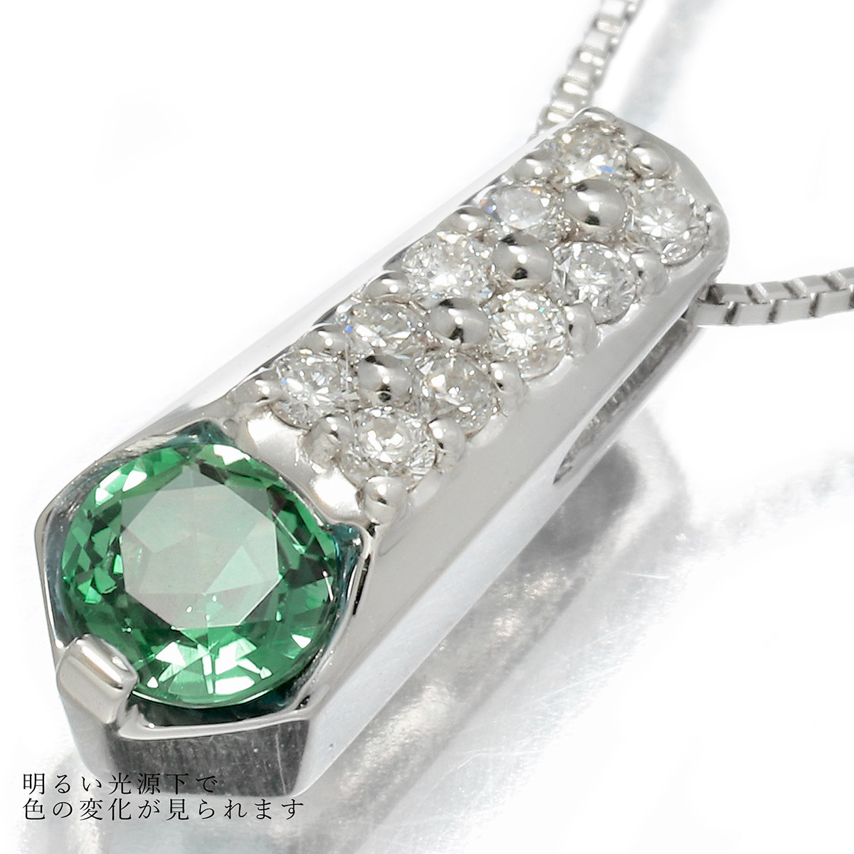 神秘的なカラーチェンジを楽しめるアレキサンドライトを、モダンな縦長フォルムに仕立てたペンダントネックレス。縦ラインのスマートなデザインは、オンオフ問わずデコルテにすっきりと馴染み、上品な印象を与えます。