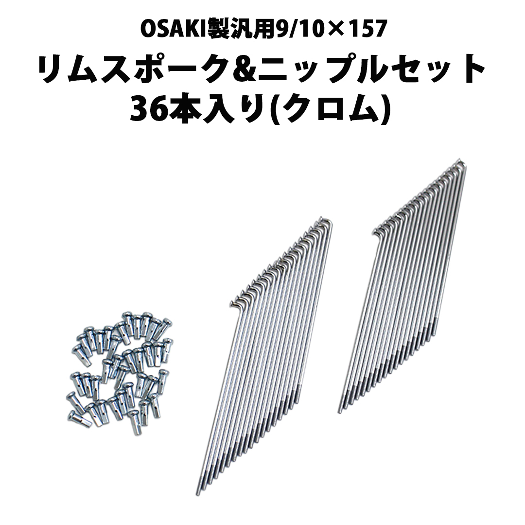 【商品名】OSAKI製 汎用9/10×157 スポーク&ニップルセット 36本入り(クロム) TWR製 H型アルミリムに対応