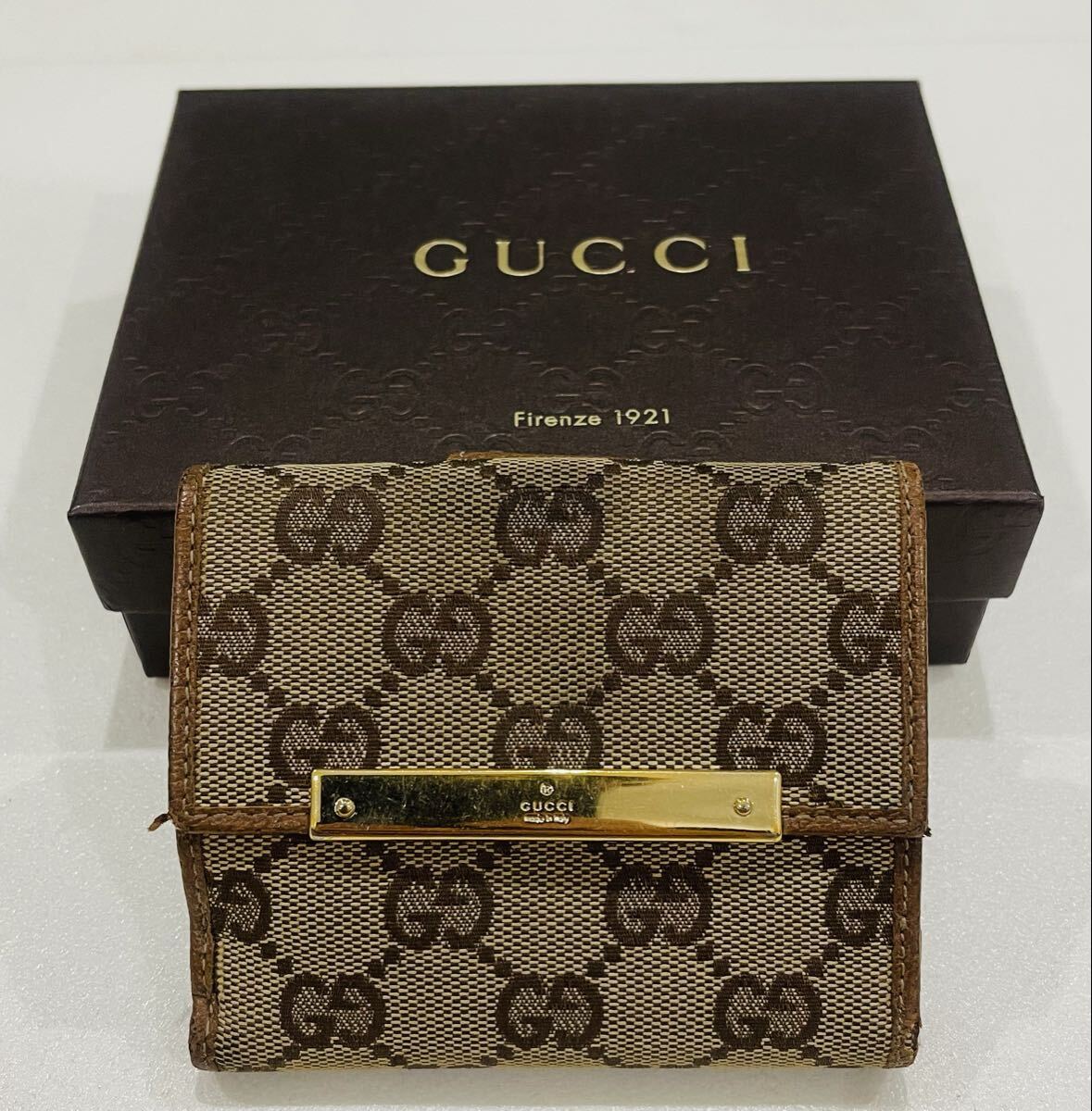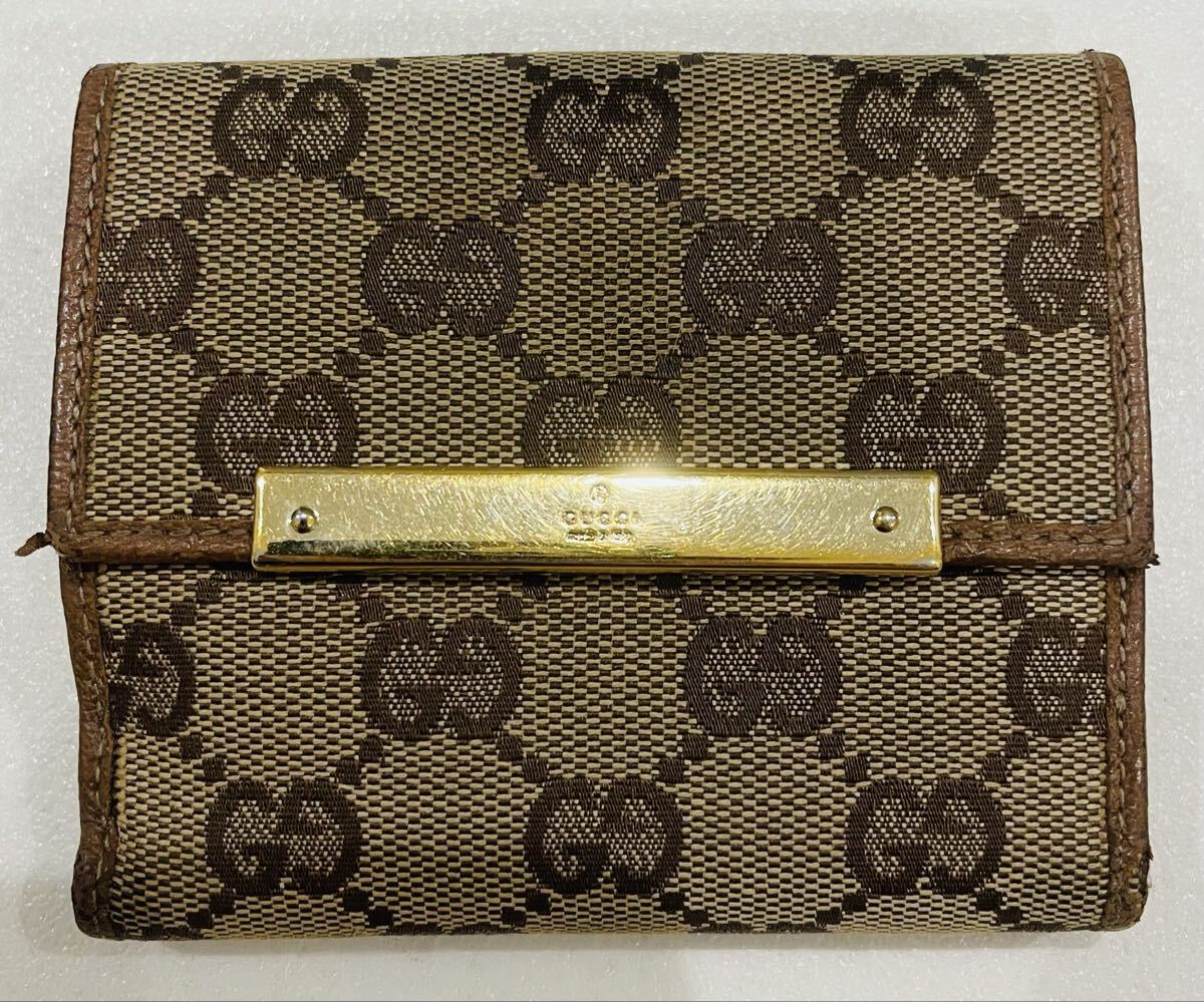 ☆商品名 グッチ GUCCI 財布 二つ折り GGキャンバス 1円スタート レザー ベージュ レディース 箱付き