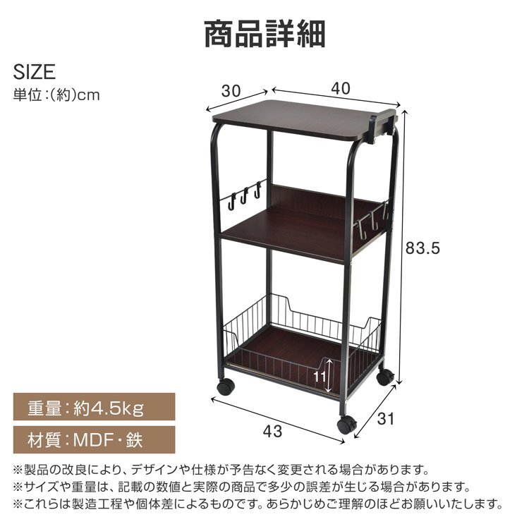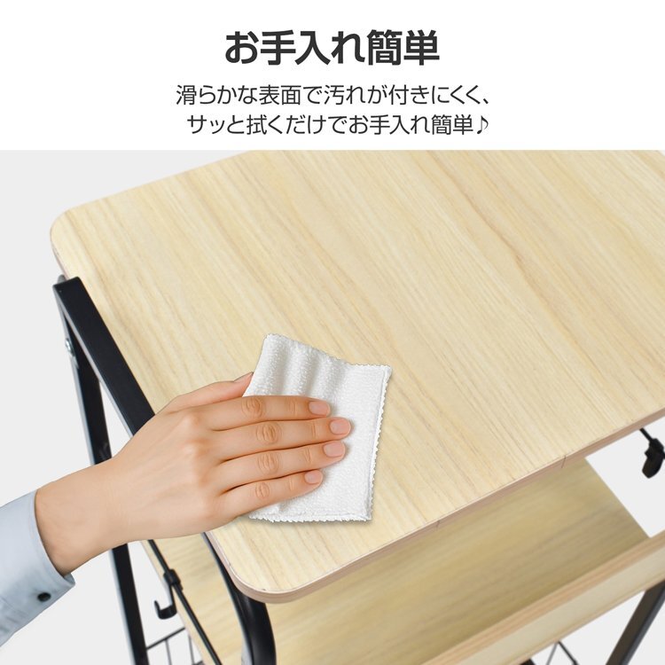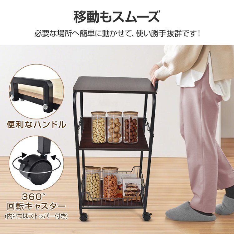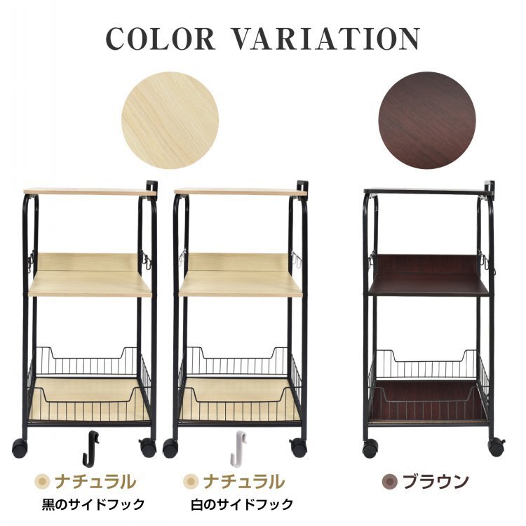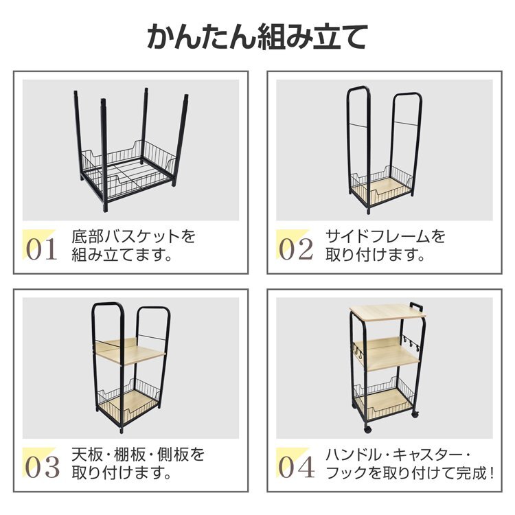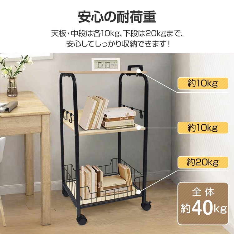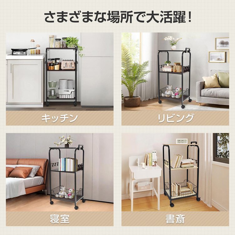 送料無料 キッチンワゴン キャスター付き 3段 収納 ラック スリム カウンター ハンドル 取っ手 サイドフック 360°回転 キャスター in026