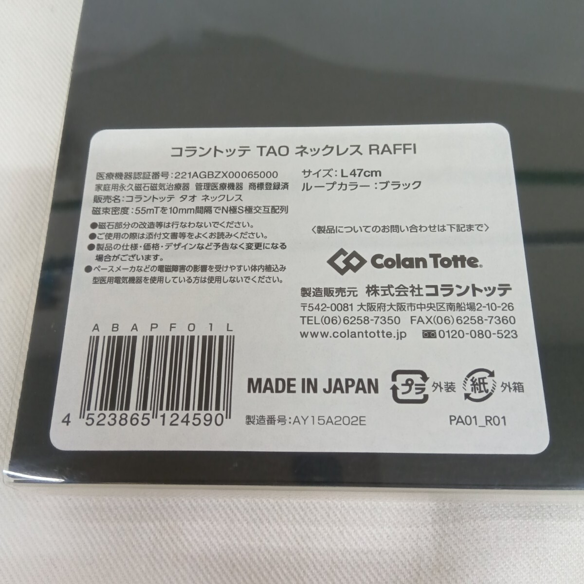 Colamtotte コラントッテ TAO タオ ネックレス RAFFI L 47㎝ ブラック 黒 25100702