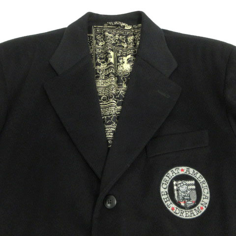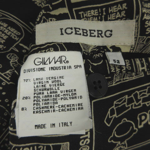 アイスバーグ ICEBERG×ピーナッツ PEANUTS ジャケット チャーリーブラウン ワッペン 3B イタリア製 起毛 カシミヤ混 ブラック 黒 52