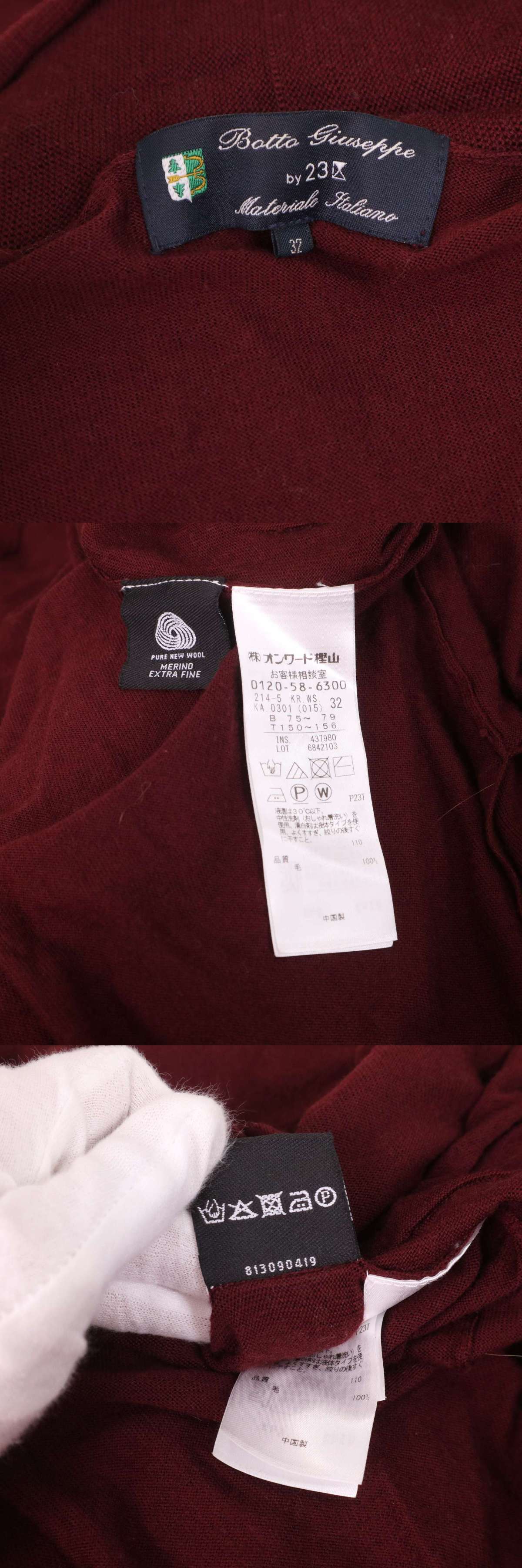 botto giuseppe by 23区 イタリア生地★ ウール100% ロング カーディガン ニット 羽織り Sz.32 レディース 小さいサイズ