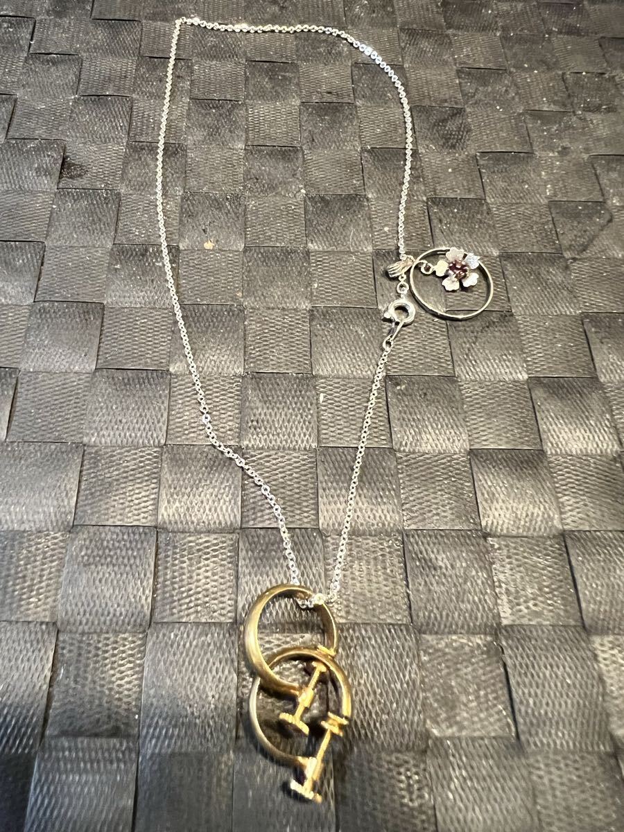 シルバーとゴールドの組み合わせが上品なネックレスです。