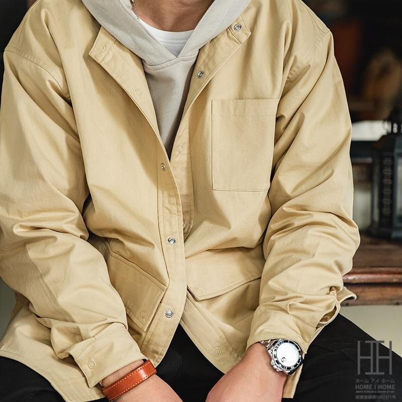 今回ご紹介したいのは【綿100%素材使用のバンドカラーシャツジャケット】です。