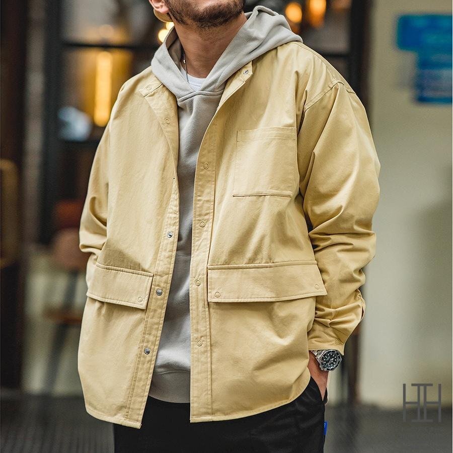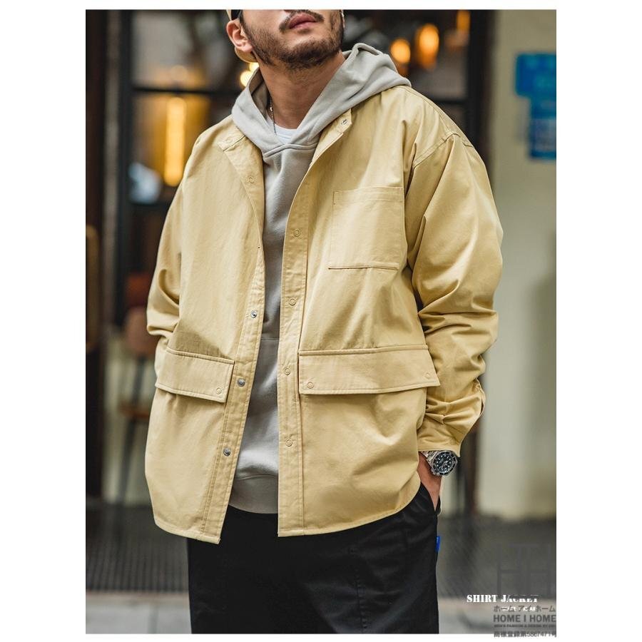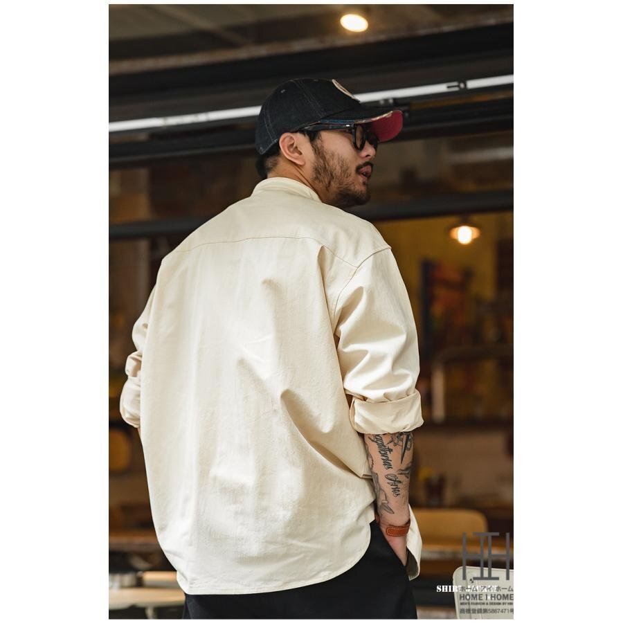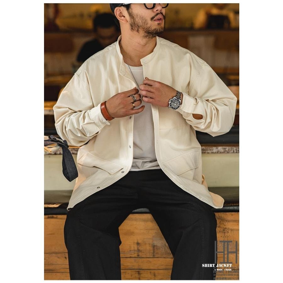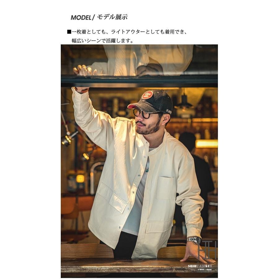 バンドカラー シャツジャケット メンズ 長袖 カジュアルシャツ 綿100 大きいサイズ ワーク アメカジ ポケット 長袖シャツ トップス アウター 羽織り ゆったり オシャレ 春夏 ライトアウター コットン カジュアル きれいめ 大人 シンプル デイリー 30代 40代 50代