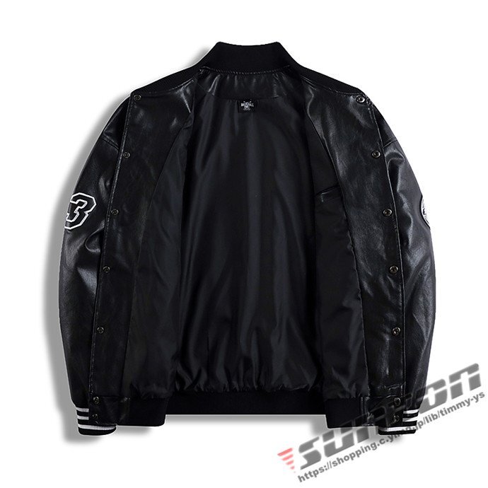 ブルゾン PU革ジャン メンズ カッコイイ PUレザー スタジャン ジャンパー フライトジャケット バイカラー 刺繍 薄手 羽織り