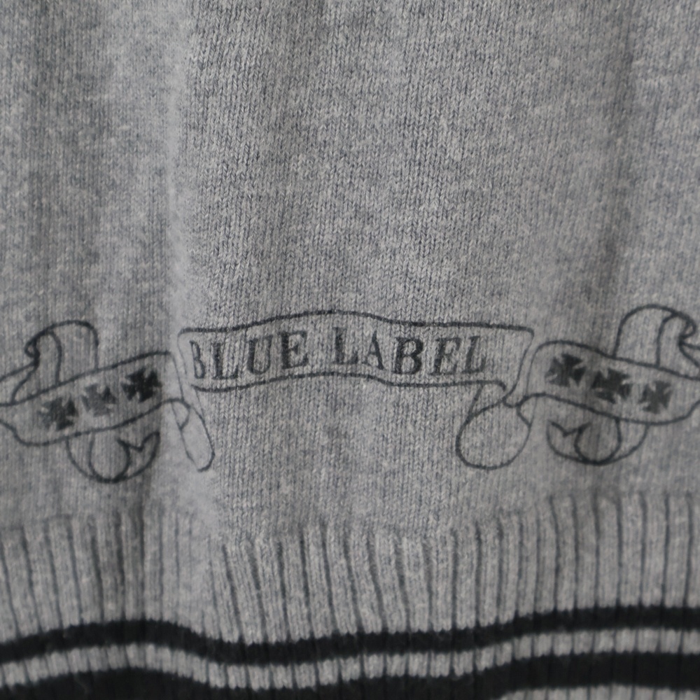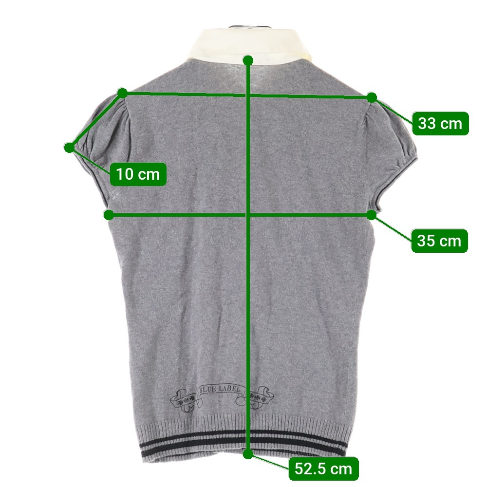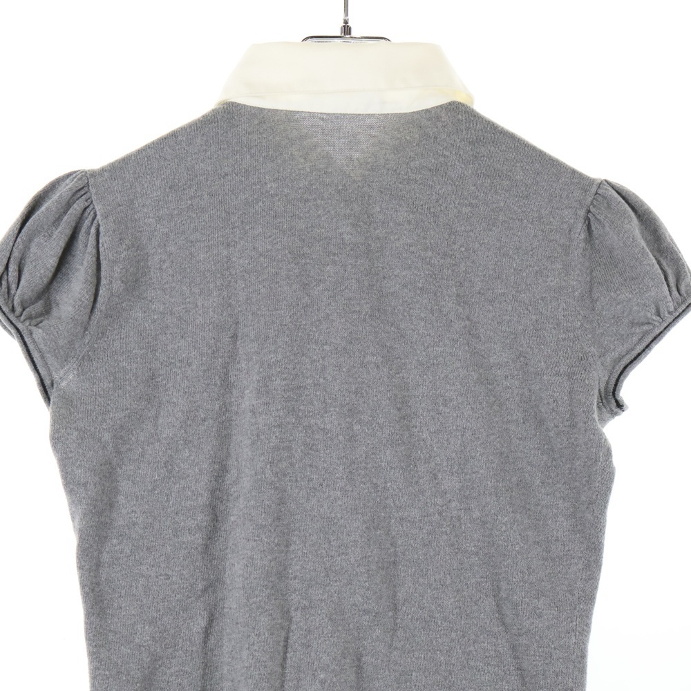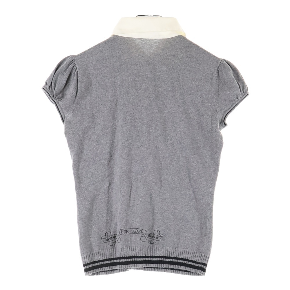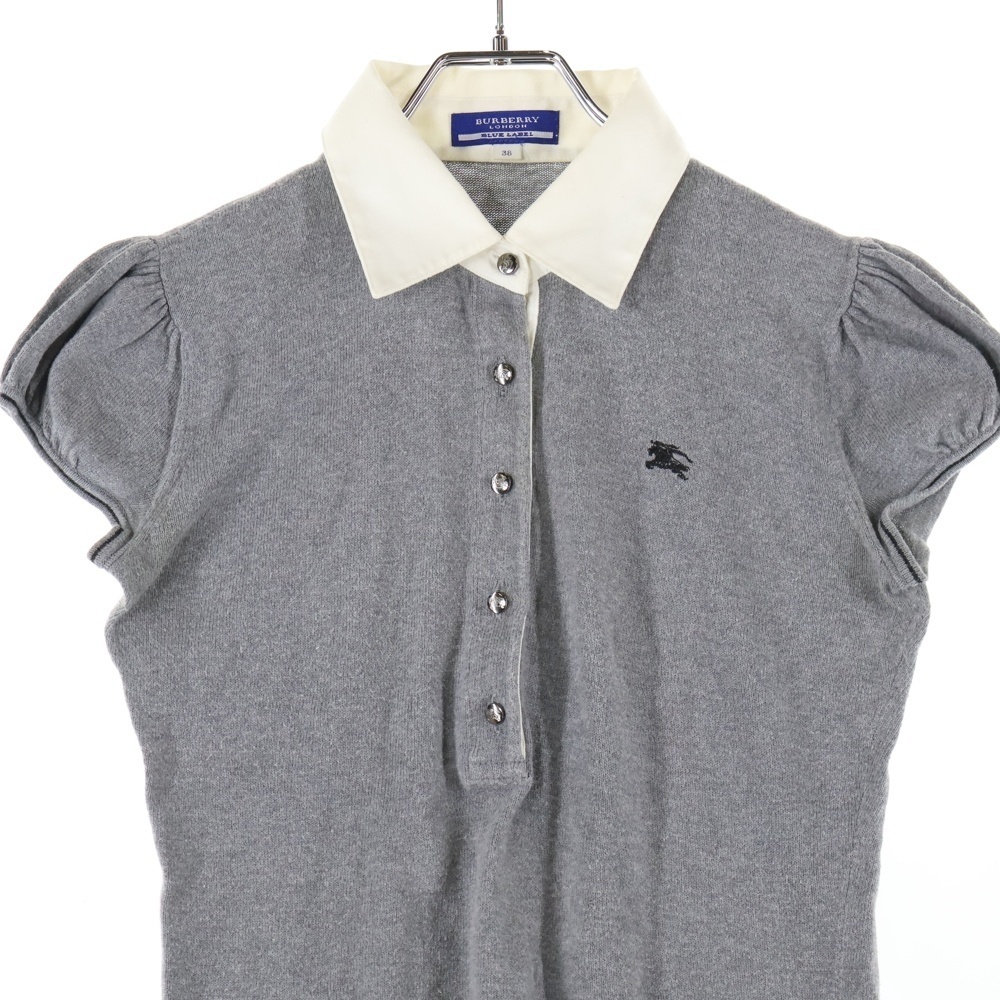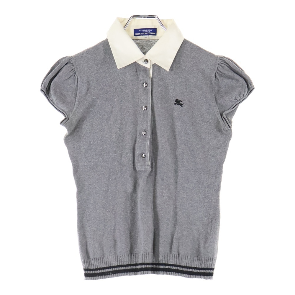 バーバリーブルーレーベル ワンポイントロゴ刺繍 バックプリント ギャザースリーブ コットンニット 半袖ポロシャツ グレー レディース