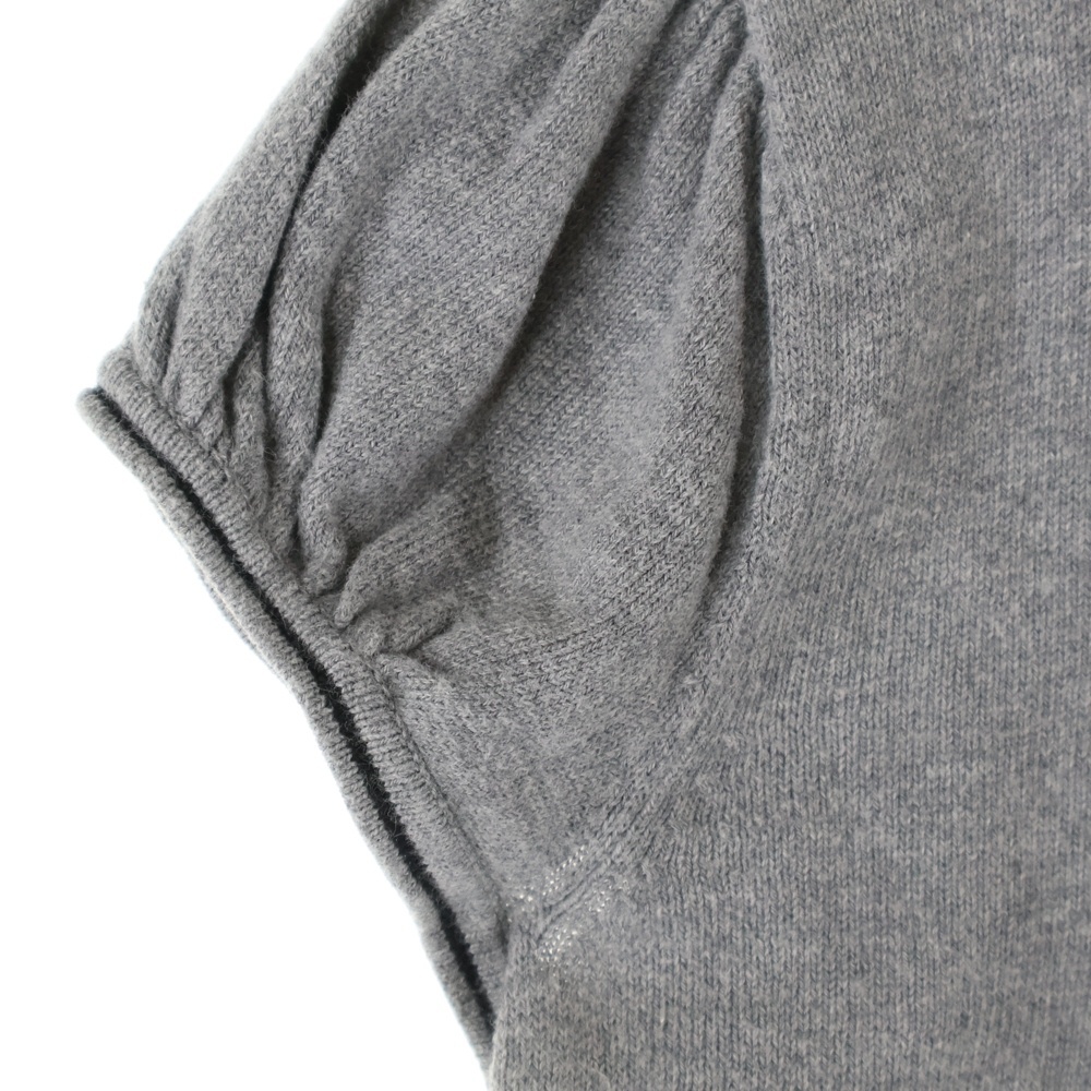 品名ワンポイントロゴ刺繍 バックプリント ギャザースリーブ コットンニット 半袖ポロシャツ グレー レディース