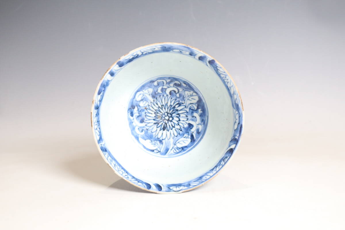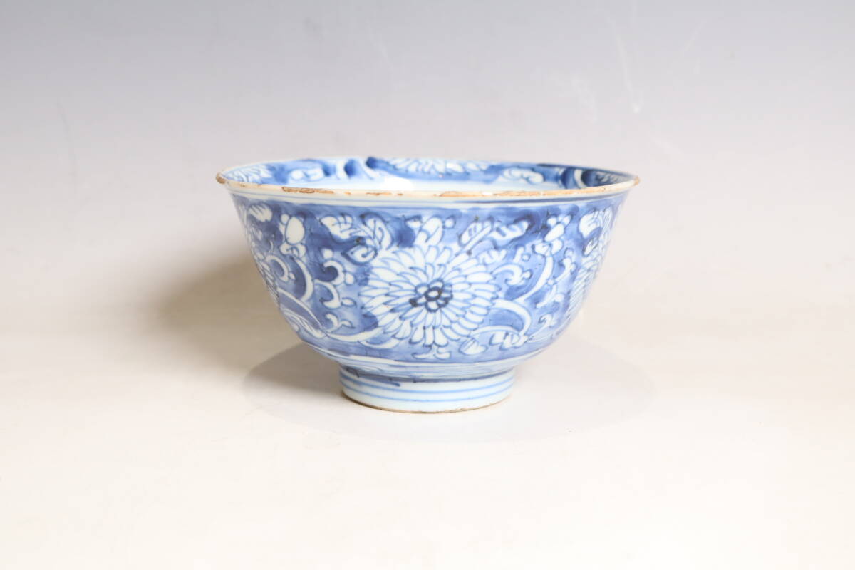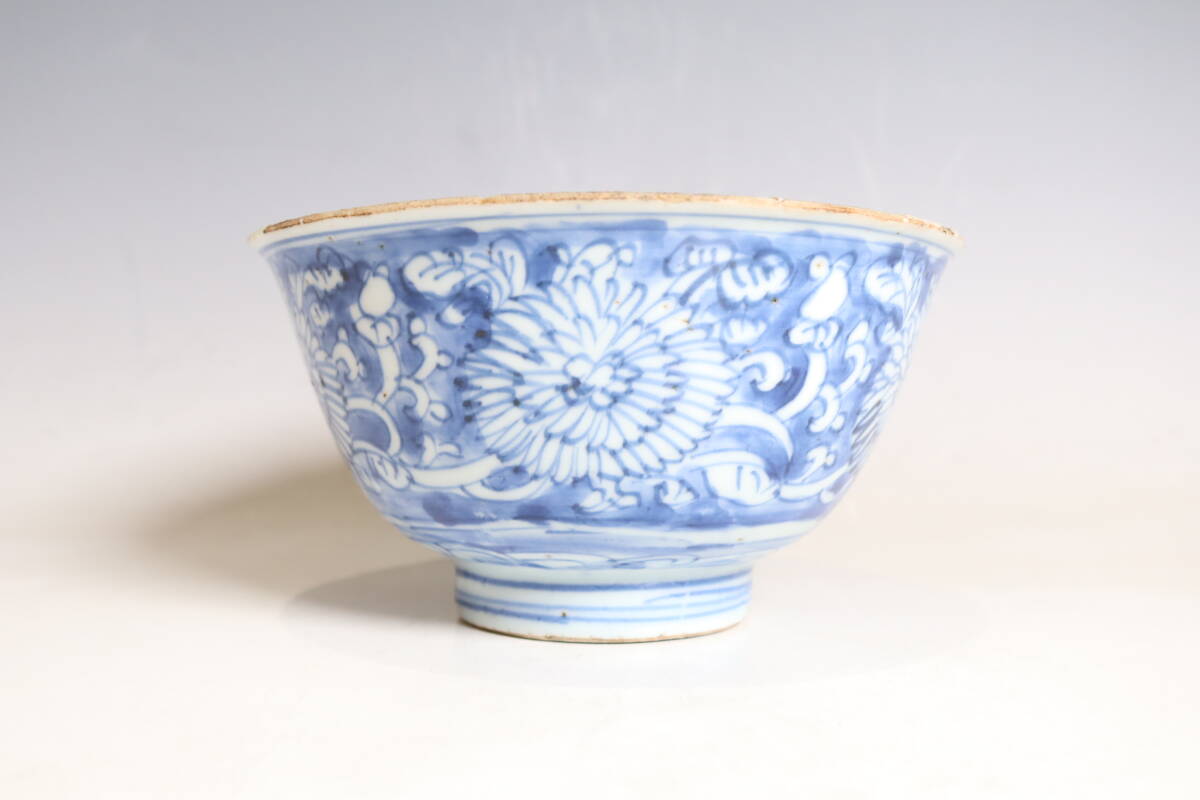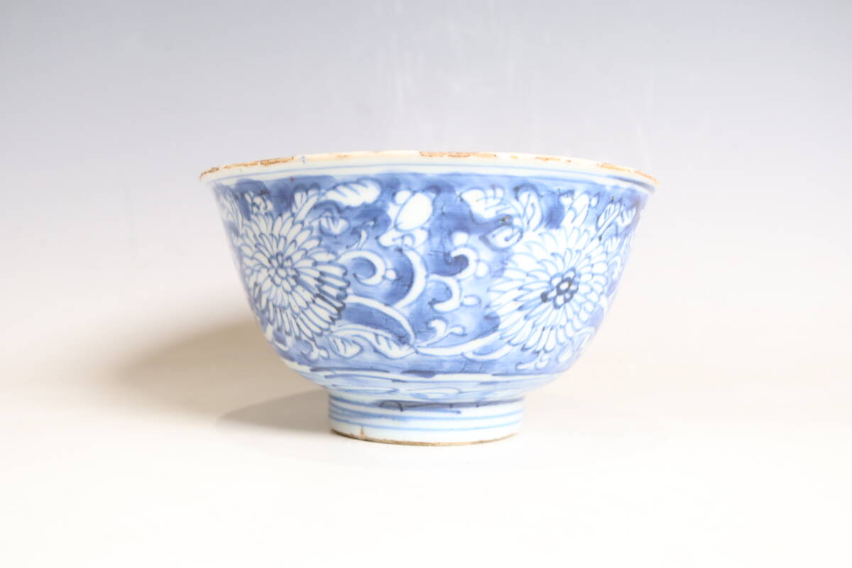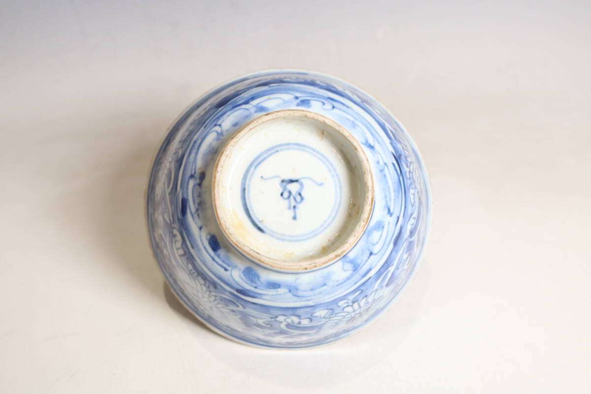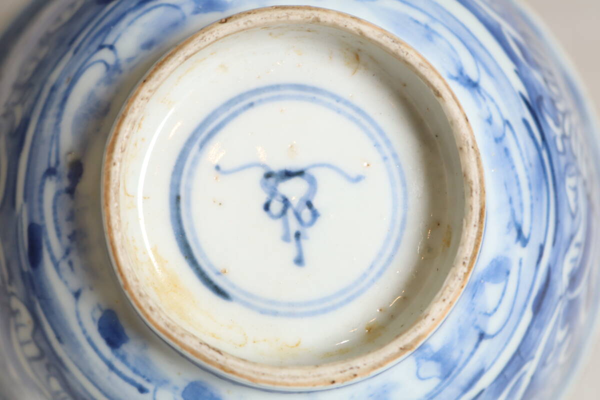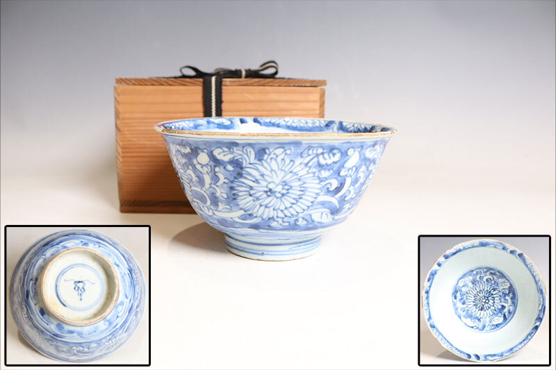 中国美術 青花纏枝花卉紋碗 南京古染付碗 木箱附 (G750)
