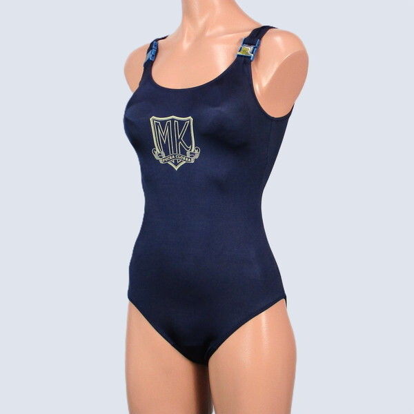E7542★ミチココシノ 水着 ワンピース レディース 9M ネイビー 紺色 金ロゴ おしゃれ ハイレグ 水泳 スイミング プール ビーチ 海