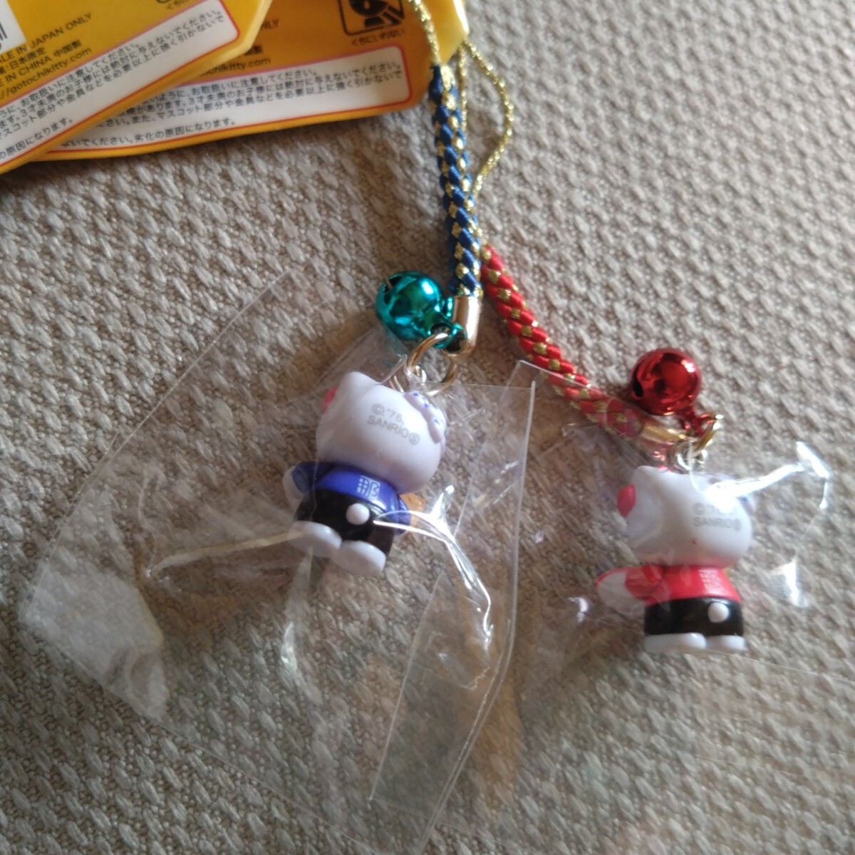 ご当地キティ 2007 福岡名物 那の福ラーメン コラボキティちゃん根付け 赤 青 全2色セット ストラップ