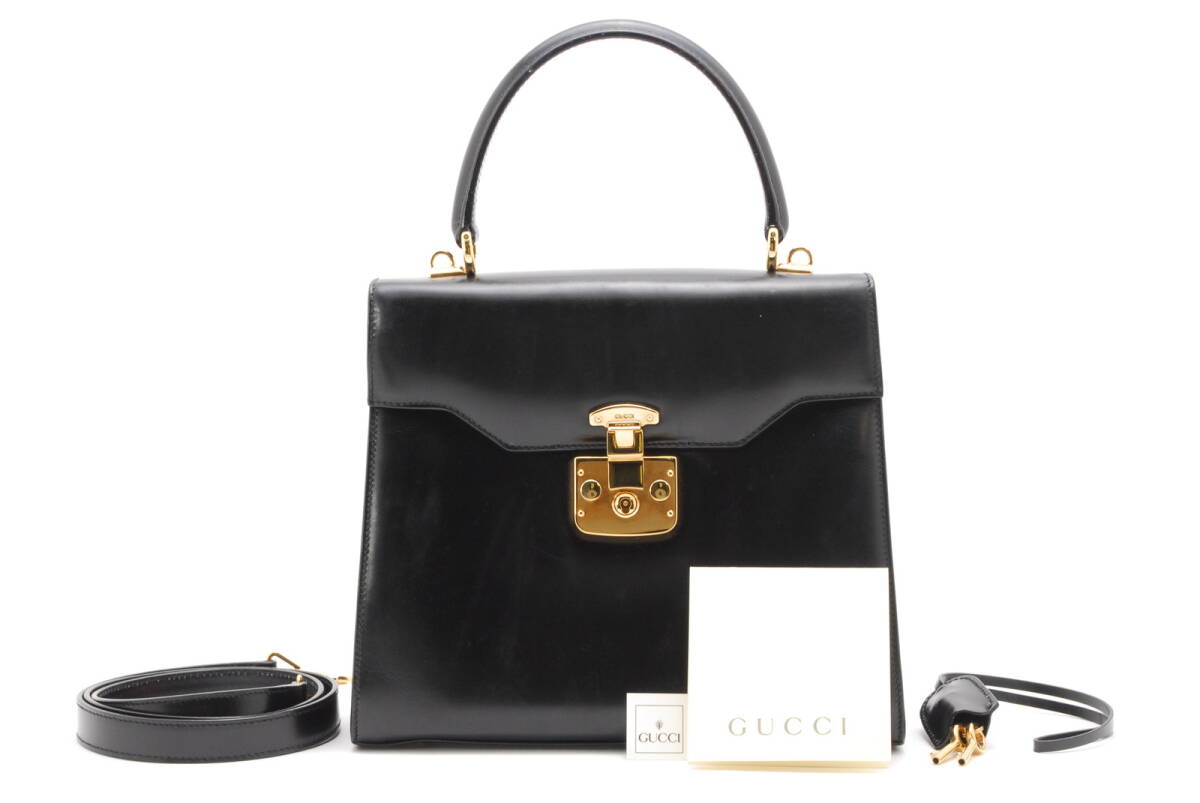 1円【極美品】GUCCI グッチ オールドグッチ ヴィンテージ レディロック ショルダーバッグ ハンドバッグ 2way レザー ブラック A0674