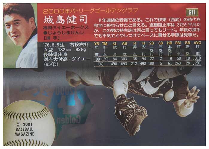 即決! 2001 BBM 2000 Golden Glove #G11 城島 健司 挿入 カード