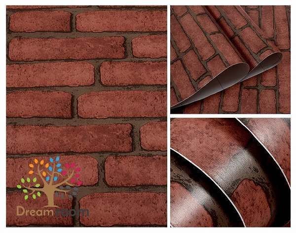 【 10m 】 ビンテージ ブラウン 3D 石垣 ストーン 壁紙 レンガ ウォールペーパー 糊付き 北欧風 インテリア はがせる シール DIY