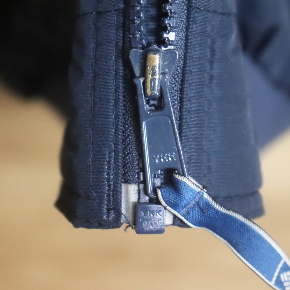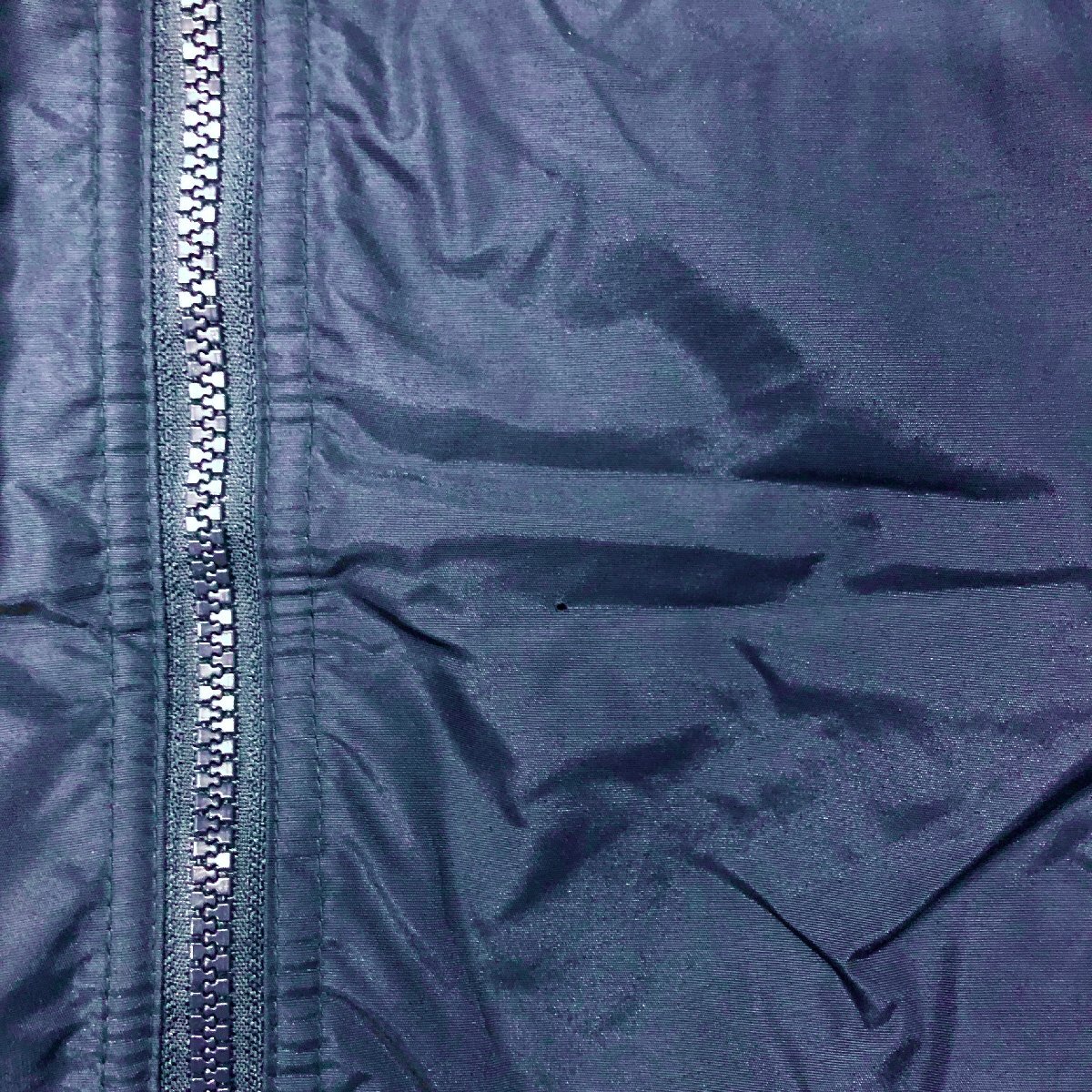 中古品です。使用感があります。袖や裏地首元、裾リブに薄汚れ、腹部に小穴がります。