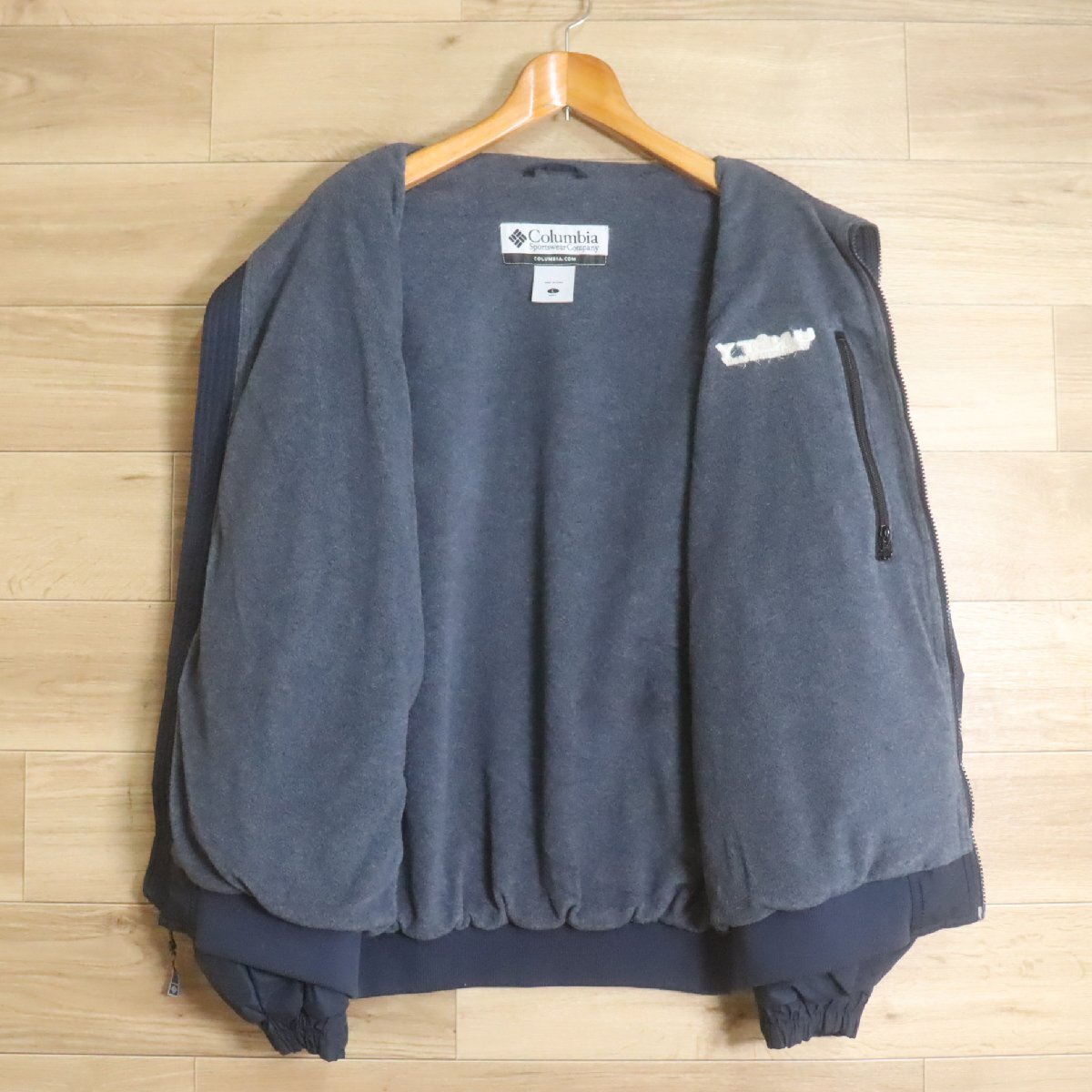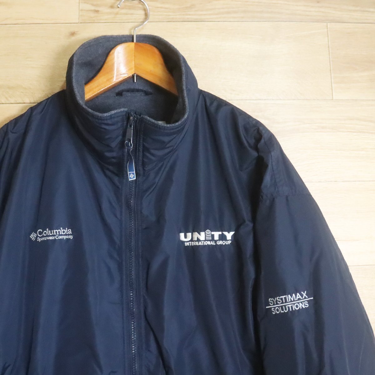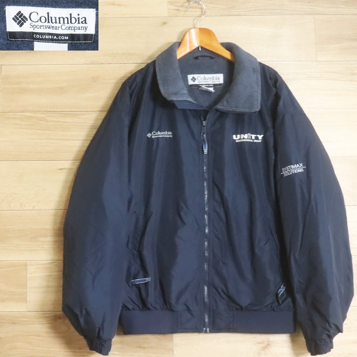 B12R/R7.25-2 Columbia コロンビア ナイロンジャケット 裏フリース 企業刺繍 ブルゾン ウォームアップジャケット L ネイビー
