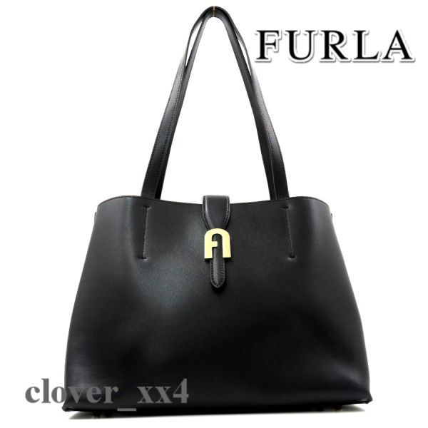 FURLA/トートバッグ/ソフィア/ブラック/レザー/アーチロゴ/極美品/中古