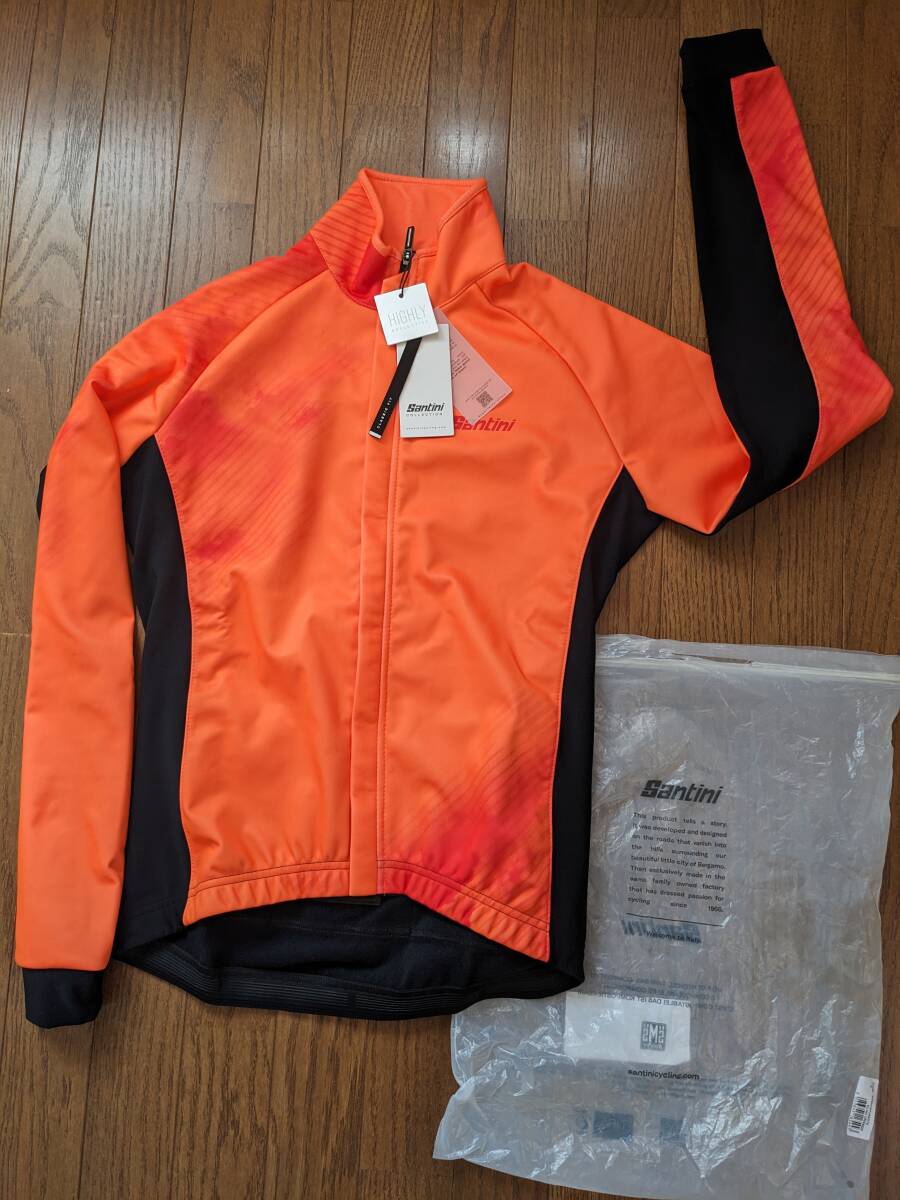 Santini Pure Dye Jacket Sサイズ、オレンジ、男性用。2025年10月に新品を買いました。まだタグが付いてます。袖を通してみたところ、ちょっときついので、返品するにも数千円かかってしまいますから、売ります。