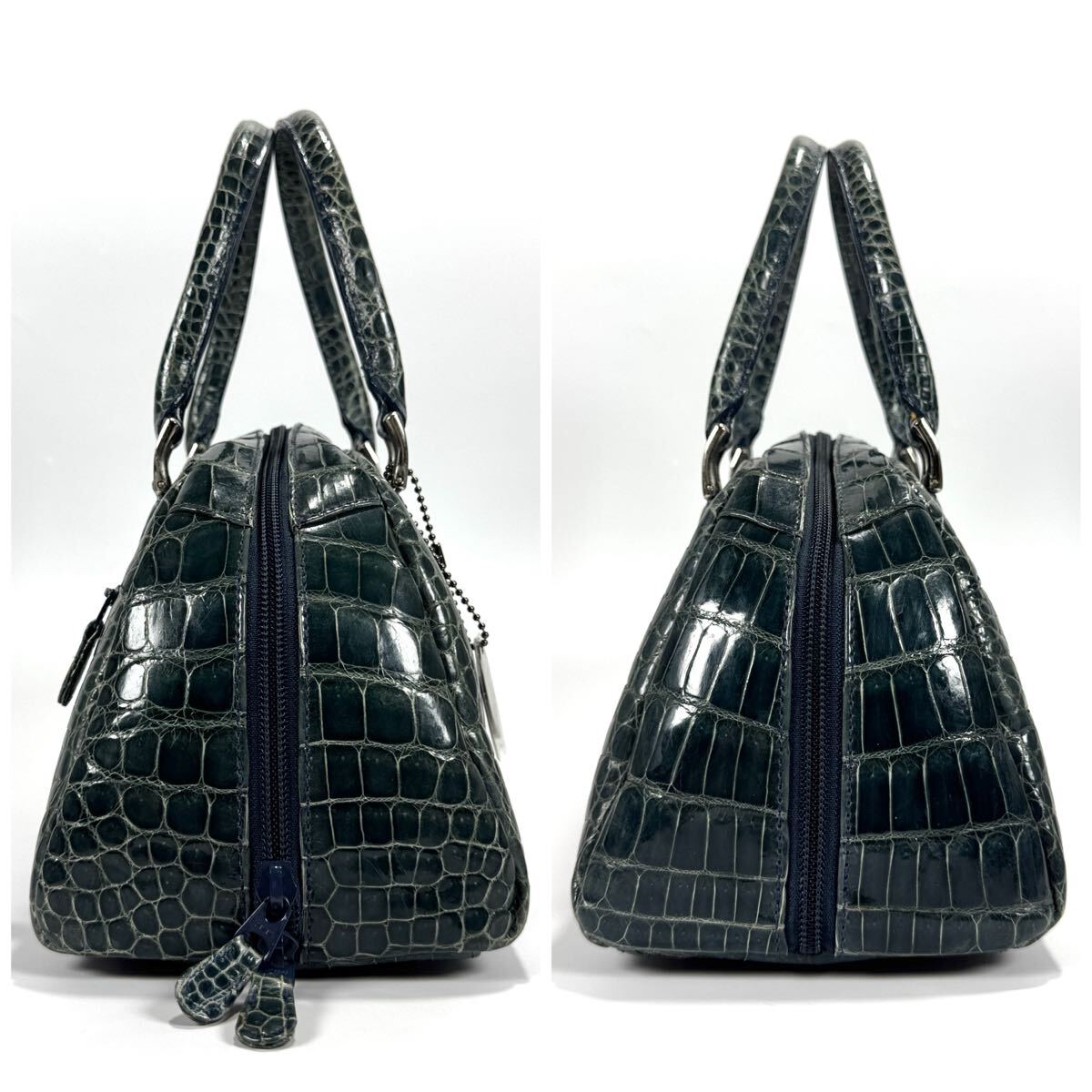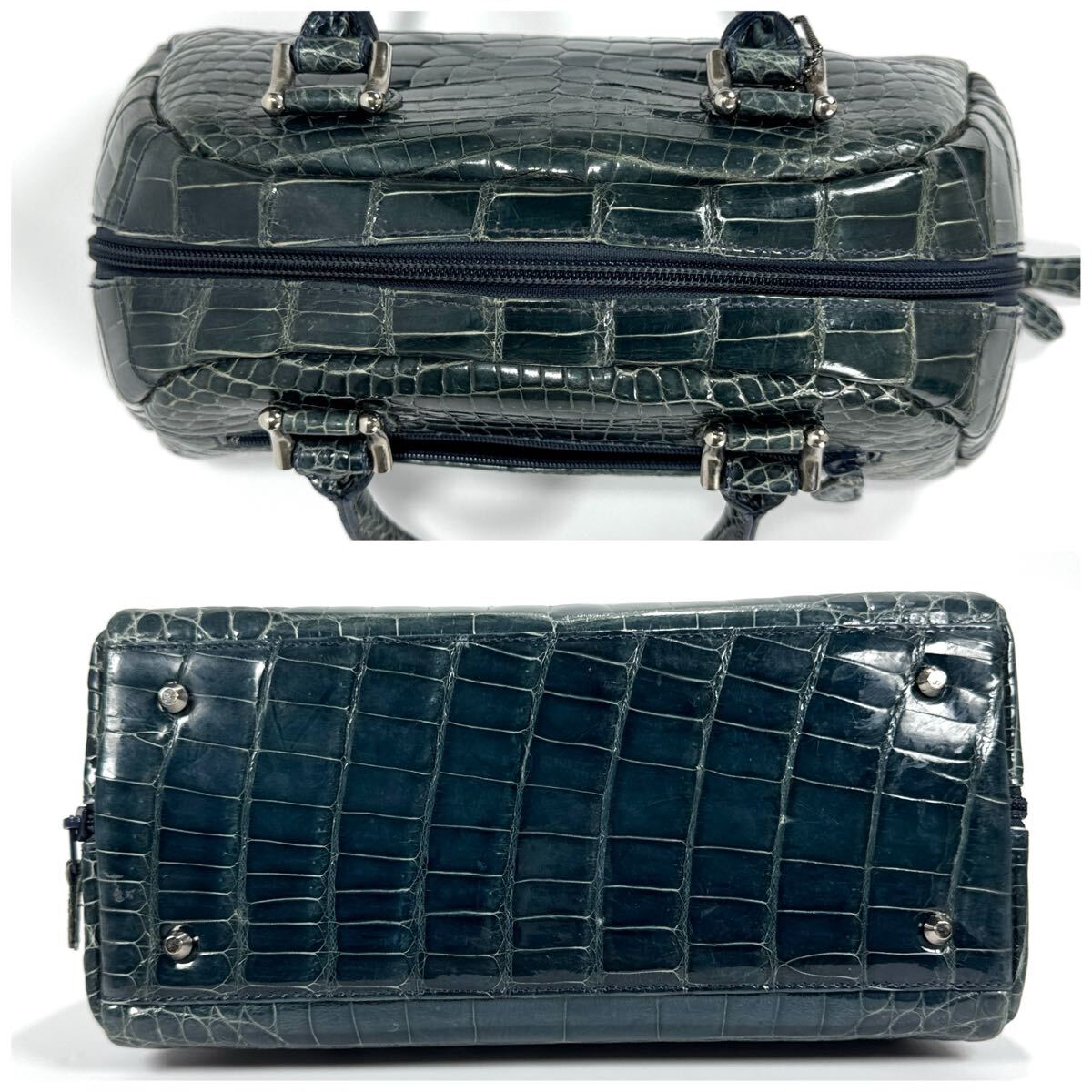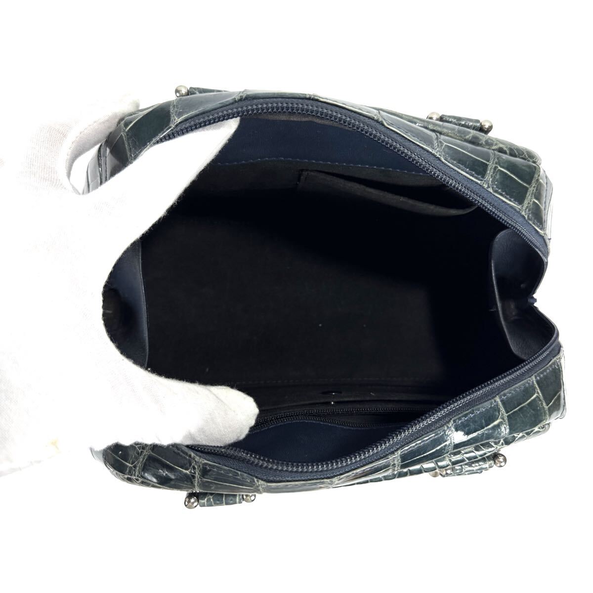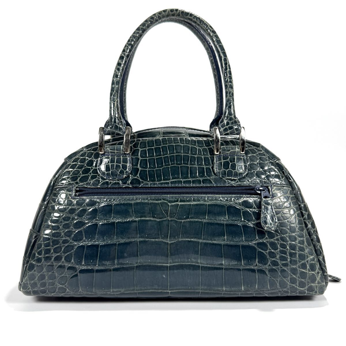希少!!エメラルドグリーン 極美品 シャイング クロコ JRA 認定 センター取り 鰐革 青 緑 グリーン クロコダイル ハンドバッグ