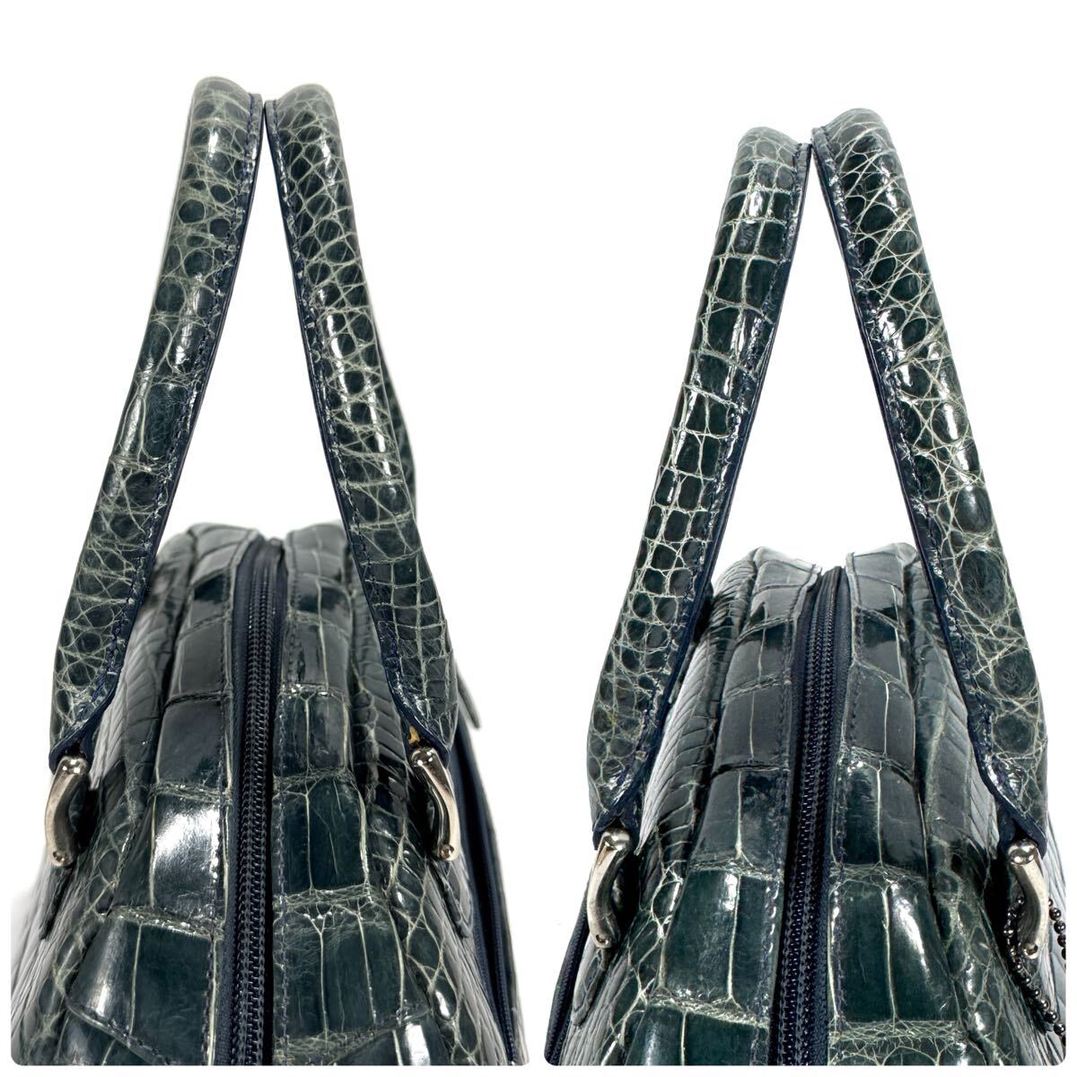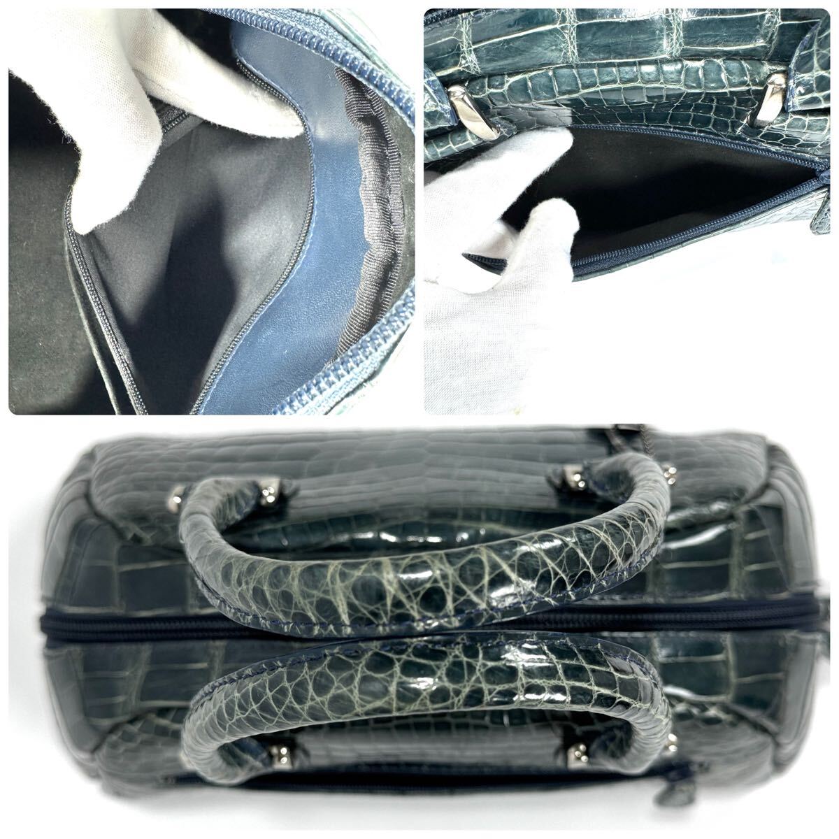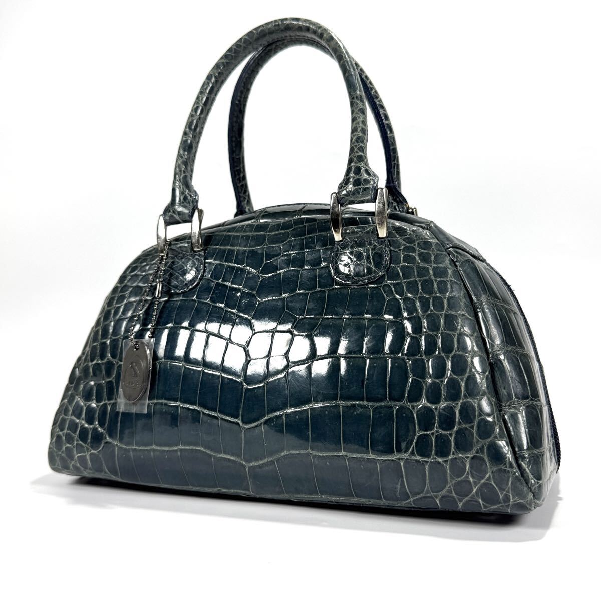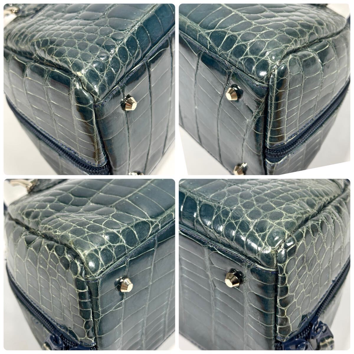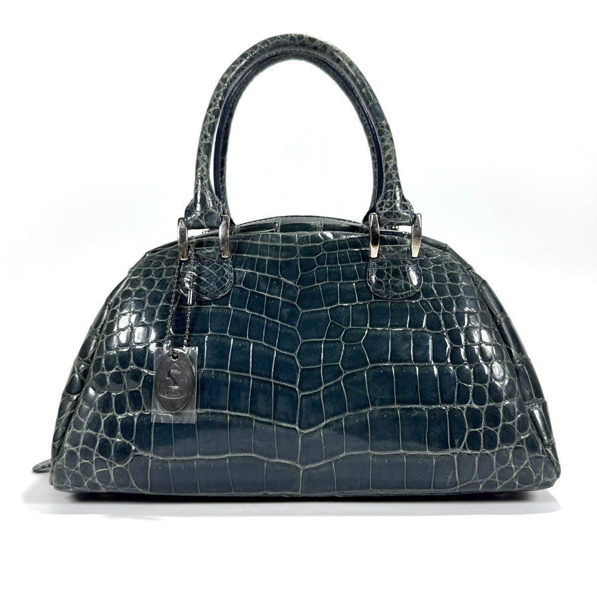 希少!!エメラルドグリーン 極美品 シャイング クロコ JRA 認定 センター取り 鰐革 青 緑 グリーン クロコダイル ハンドバッグ