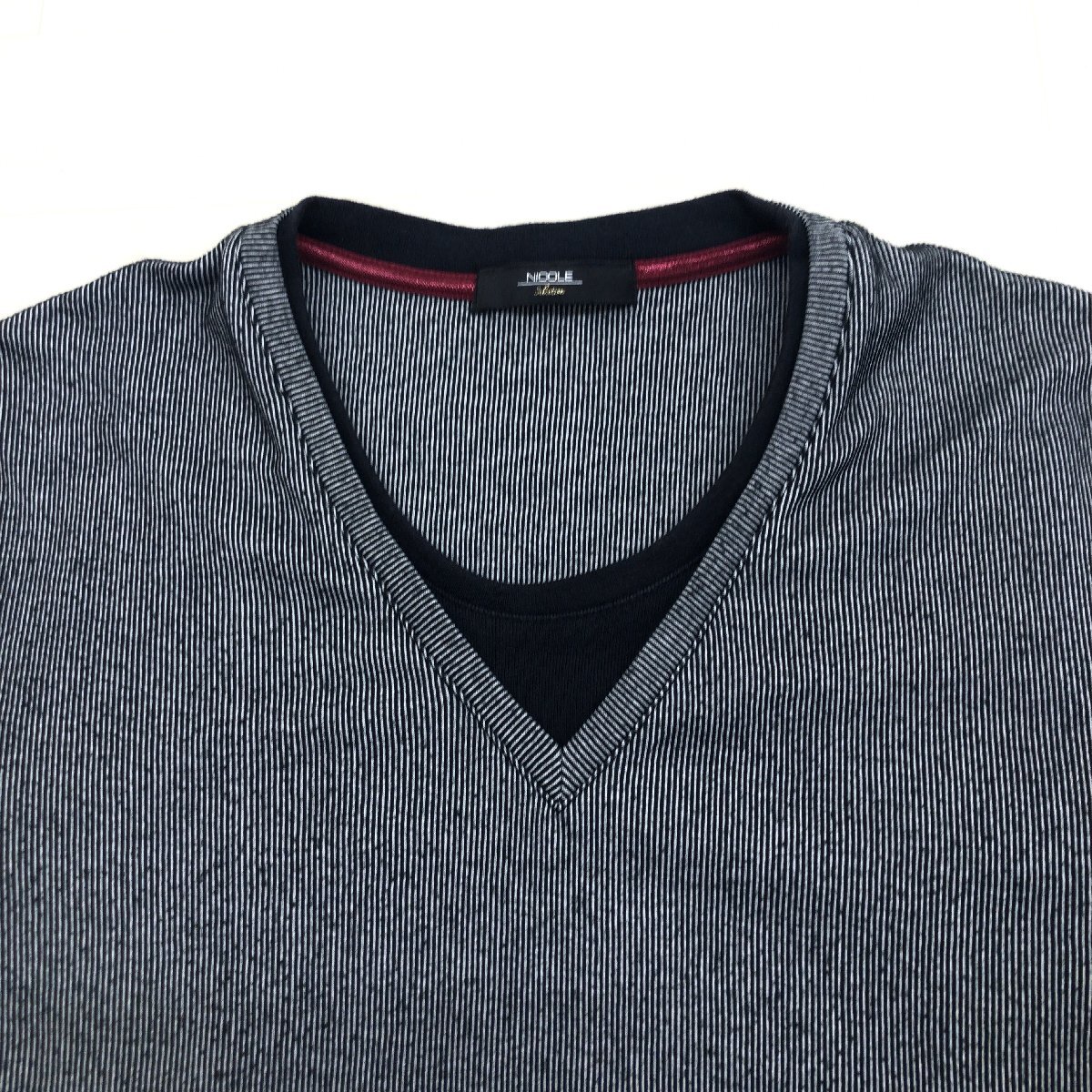 NICOLE ニコル レイヤード風 ストライプ Vネック Tシャツ 46(M) ダークグレー 長袖 ロンT カットソー ピチT お兄系 y2k グランジ Archive