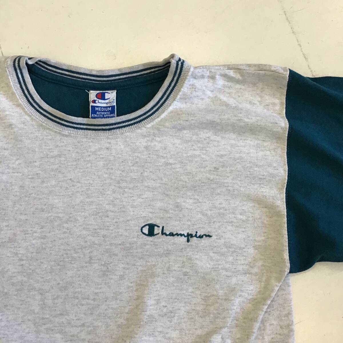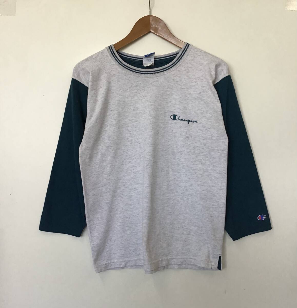 《 H 386 》champion チャンピオン 七分袖 Tシャツ ワンポイント スポーツ トレーニング made in USA Mサイズ アメリカ古着 古着卸