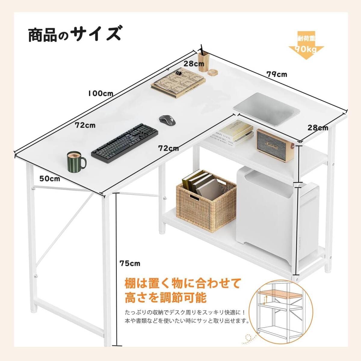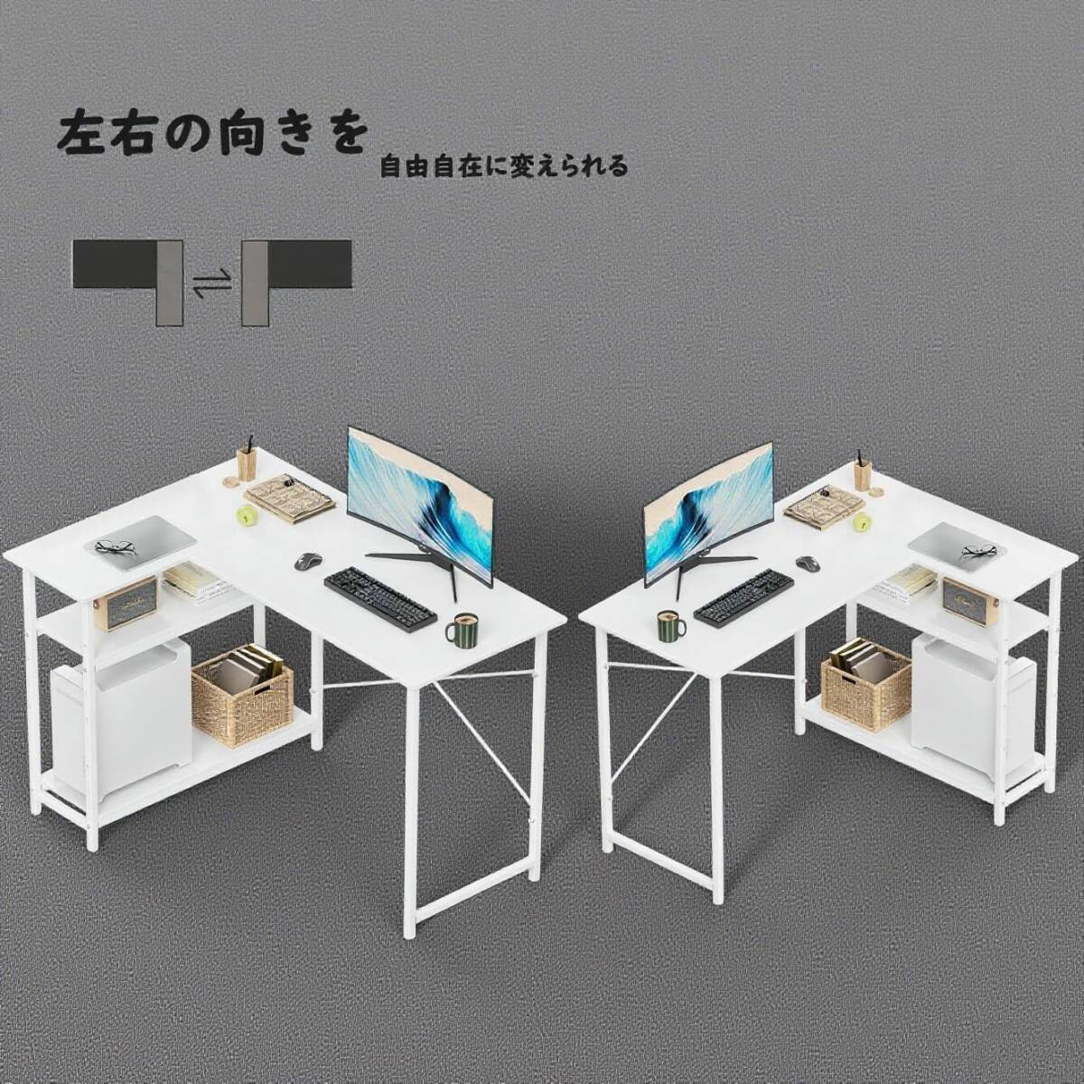 PCデスク 机 L字デスク 白色 勉強机 学習机 ゲーミングデスク 左右入替え リモートワーク 省スペース 100幅 x 75高さ cm ホワイト