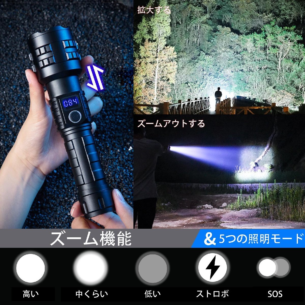 LED 懐中電灯 超高輝度 50000ルーメン 充電式 大容量バッテリー 強力 軍用 最強 アウトドア キャンプ 散歩 防災 災害 停電 ケース付 ハンディライト XHP99 電池式 充電式 明るい IP65 防水 5モード調光 ズーム調整
