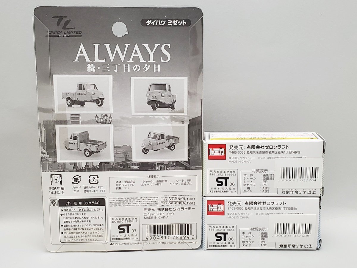 ● TOMICA トミカ ダイハツミゼット ALWAYS 続・三丁目の夕日 / ゼロクラフト特注 ダイハツ ミゼット 開店20周年記念 など3点セット ●