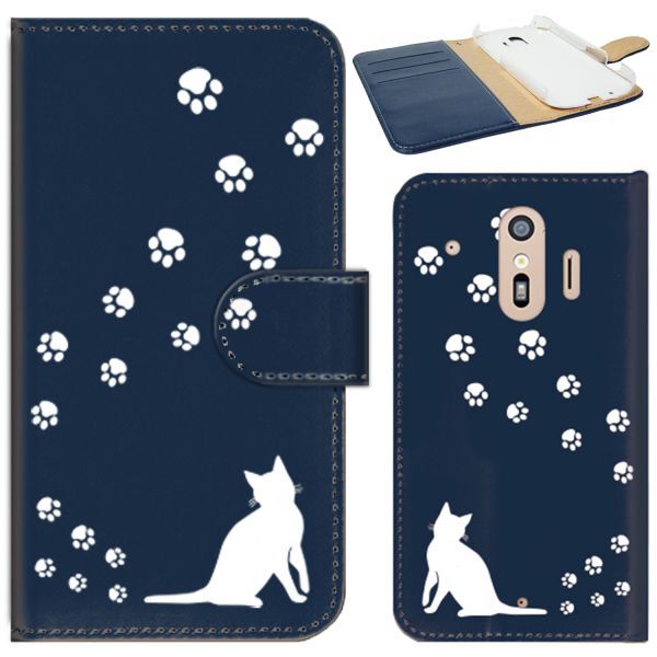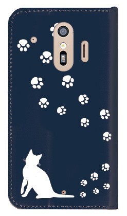 docomo らくらくスマートフォン F-01L/F-42A ケース 手帳型 (ねこの足跡いくつ?/ホワイト) FUJITSU F-01L-PD-NVR-YSZ-0141