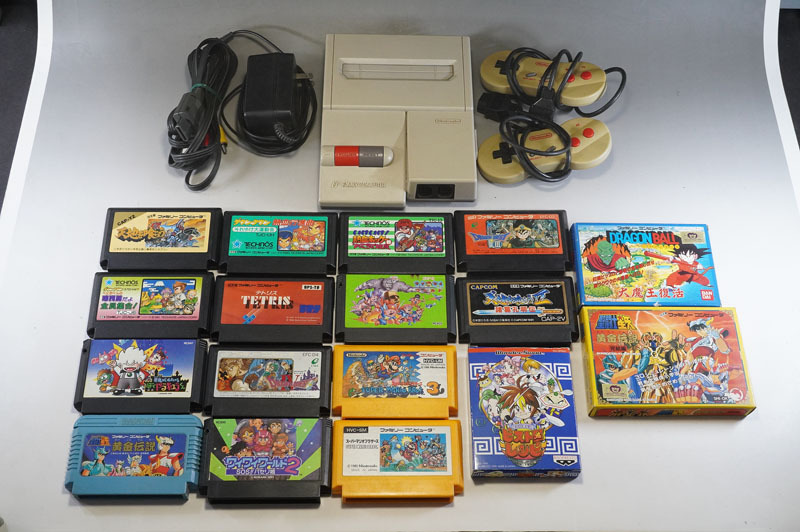 【J21】任天堂 Nintendo ニンテンドー FC ニューファミコン HVC-101 ソフト17本 ドラクエ ドラゴンボール 聖闘士星矢 マリオ テトリス 箱付