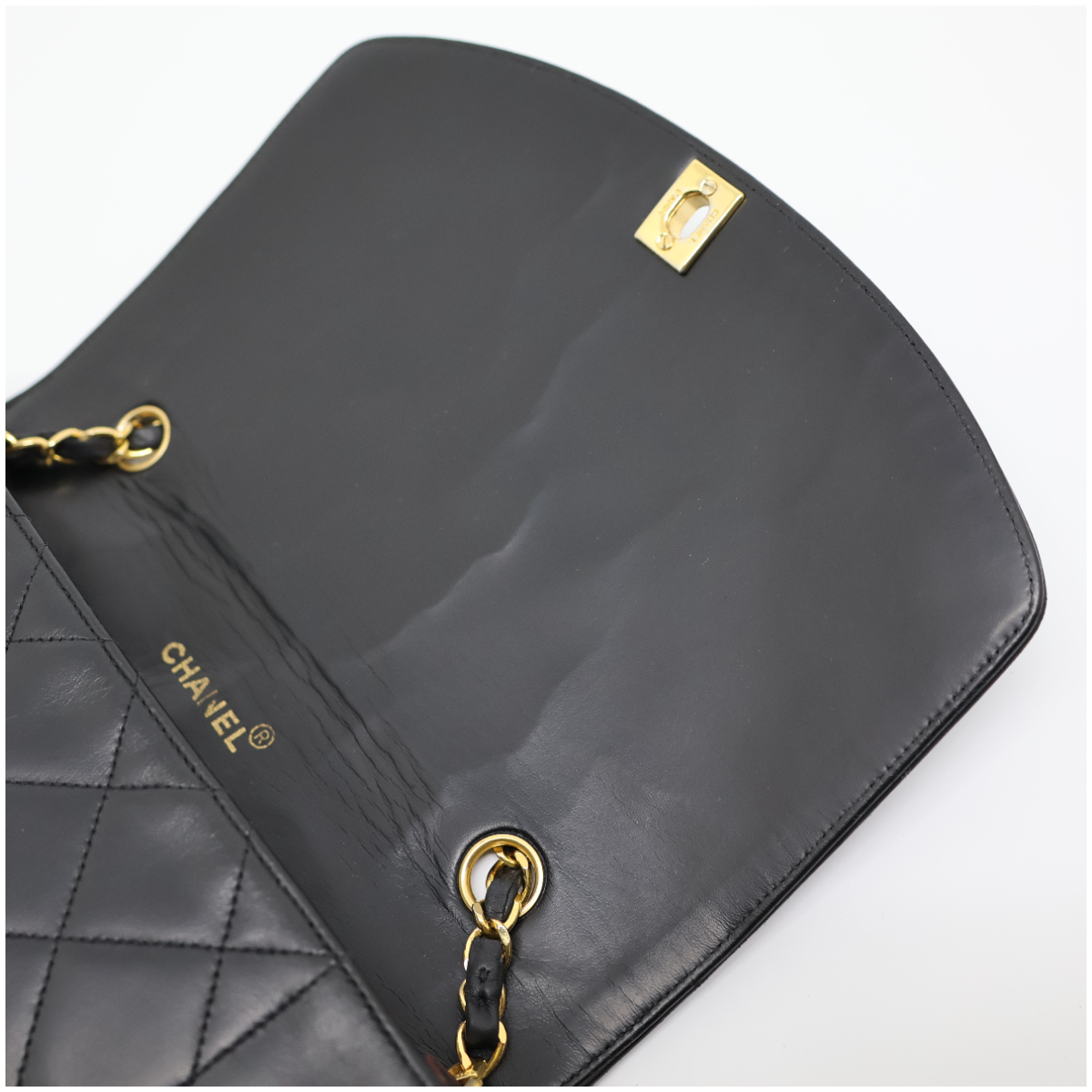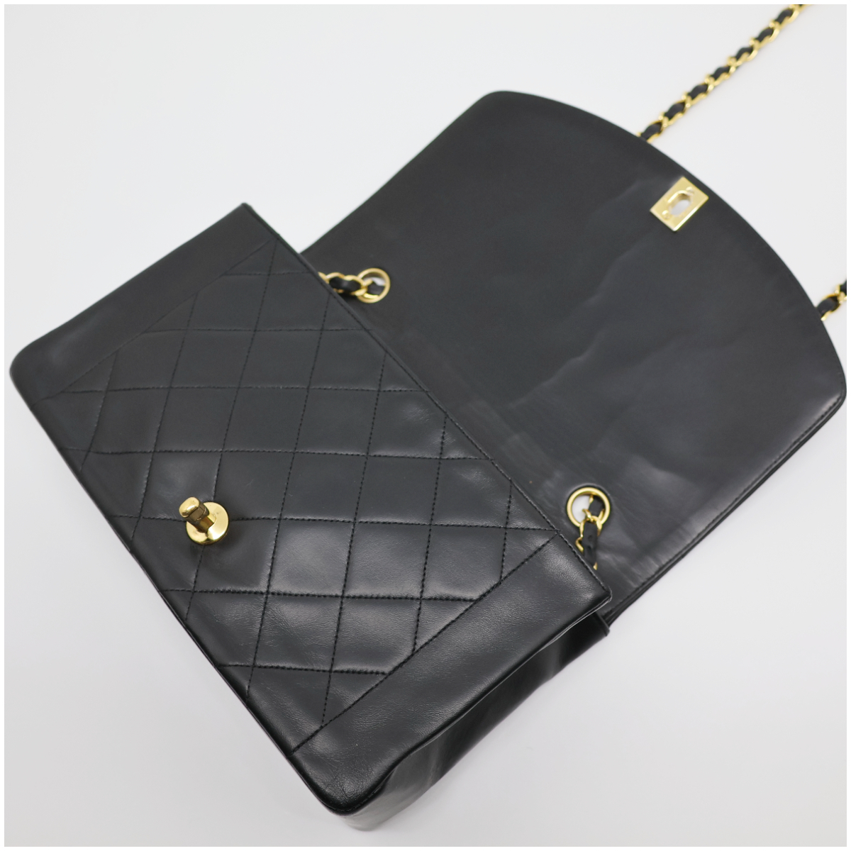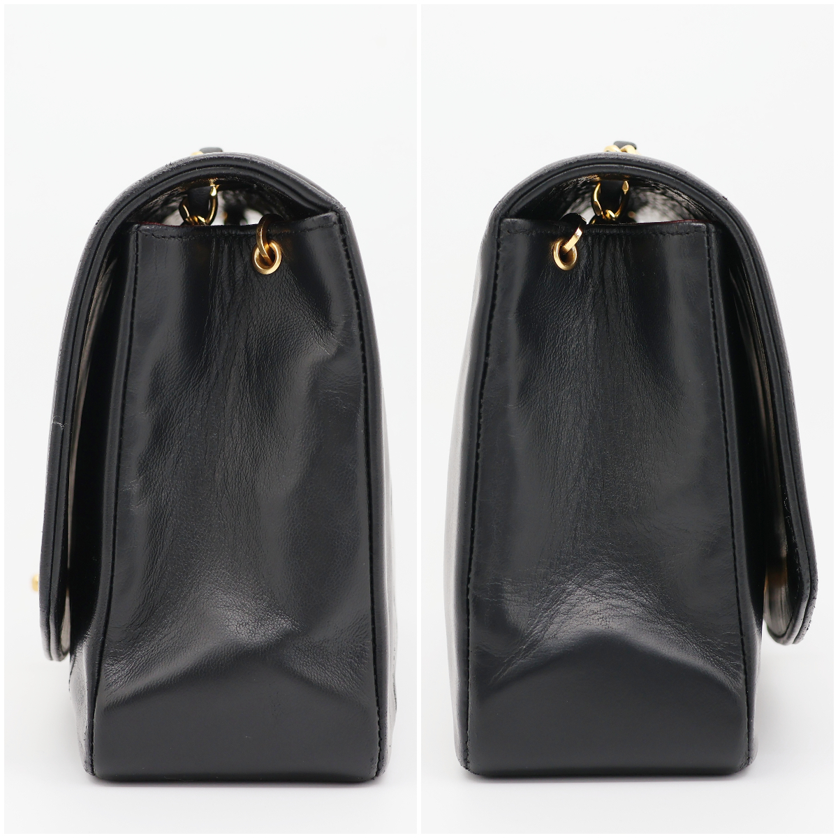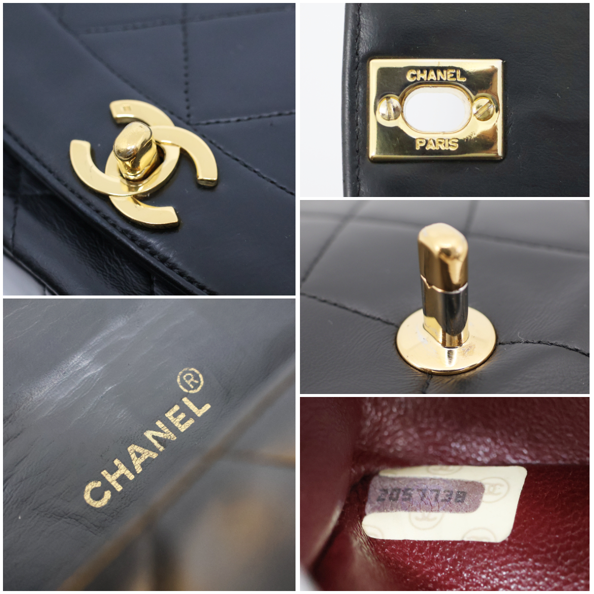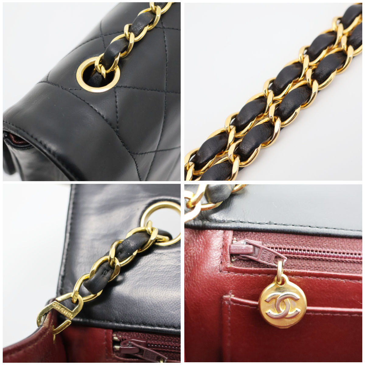 カラーメンテナンスを施しており、綺麗になっています。写真1枚目のココマークの右上に小さな傷がありますがあまり気にならないと思います。フラップの内側にシワがありますが開くと気になりません。ゴールド金具は小さな傷はありますが全体的に綺麗で金色に輝きます。底の四つ角は多少の擦れはありますが、写真のとおり綺麗です。ショルダーは使用感はありますが、目立った擦れや切れはなく綺麗な状態です。 |