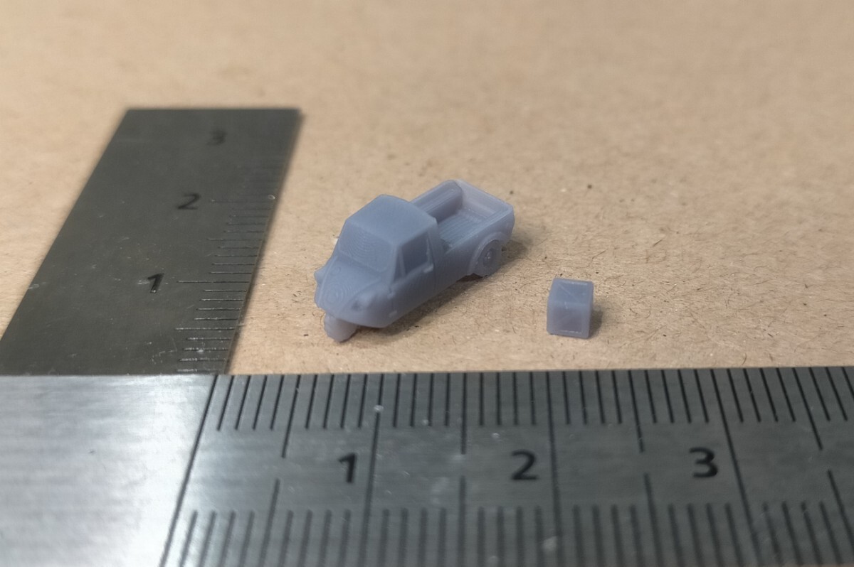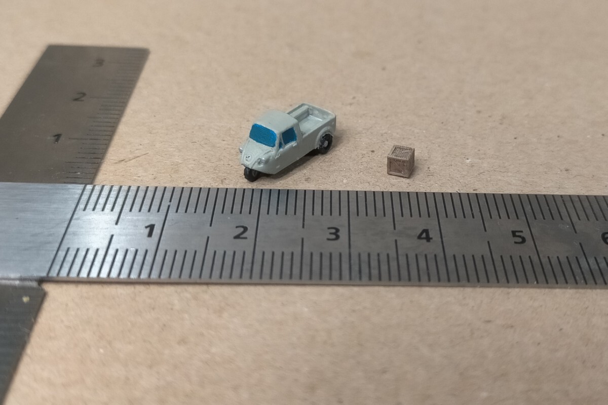 未塗装Zゲージ(1/220)スケールのミゼットと木箱セットです。