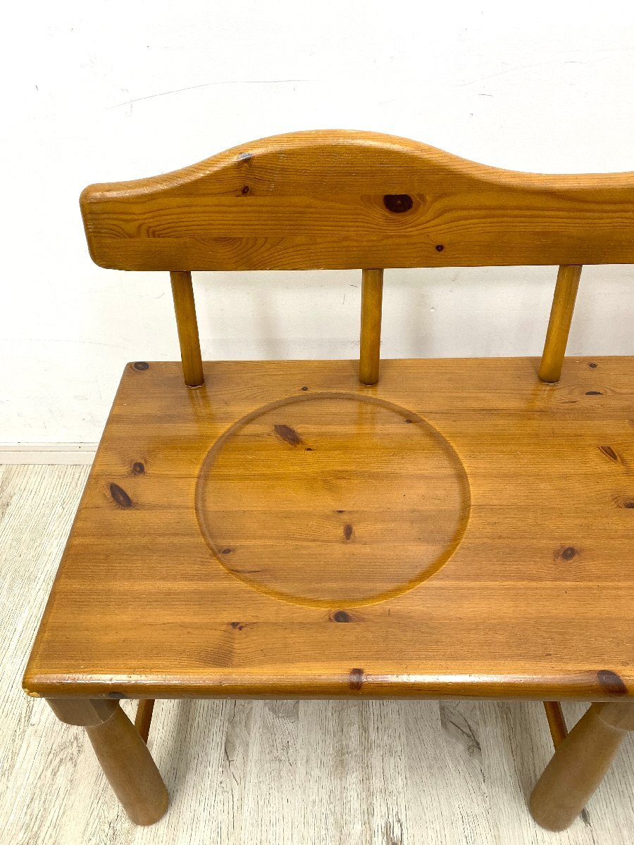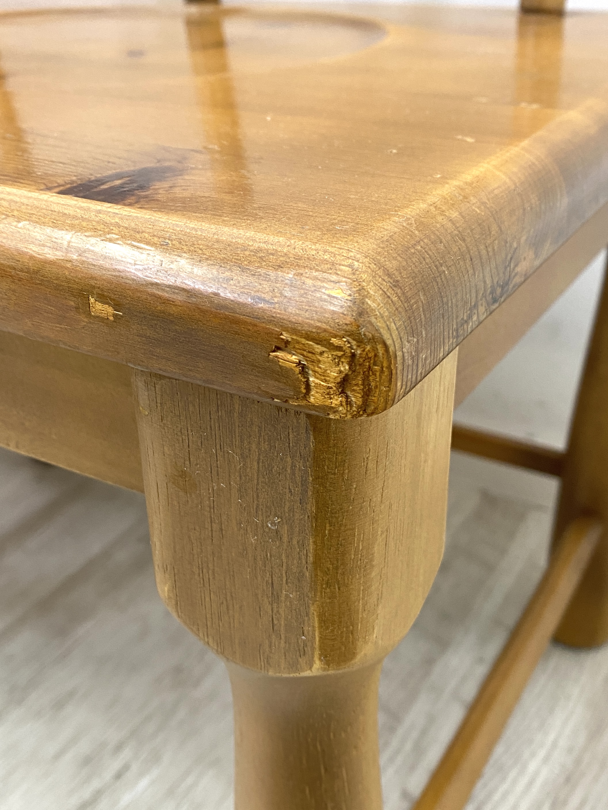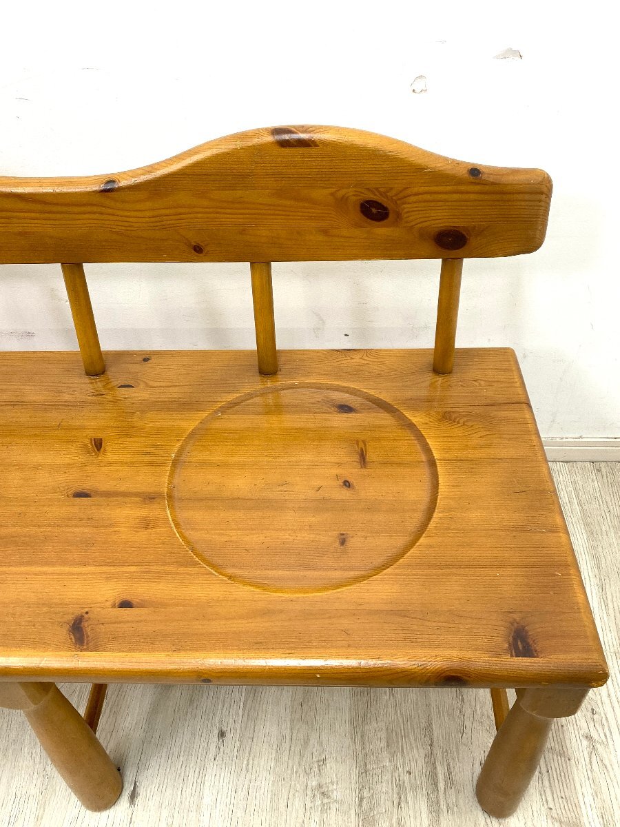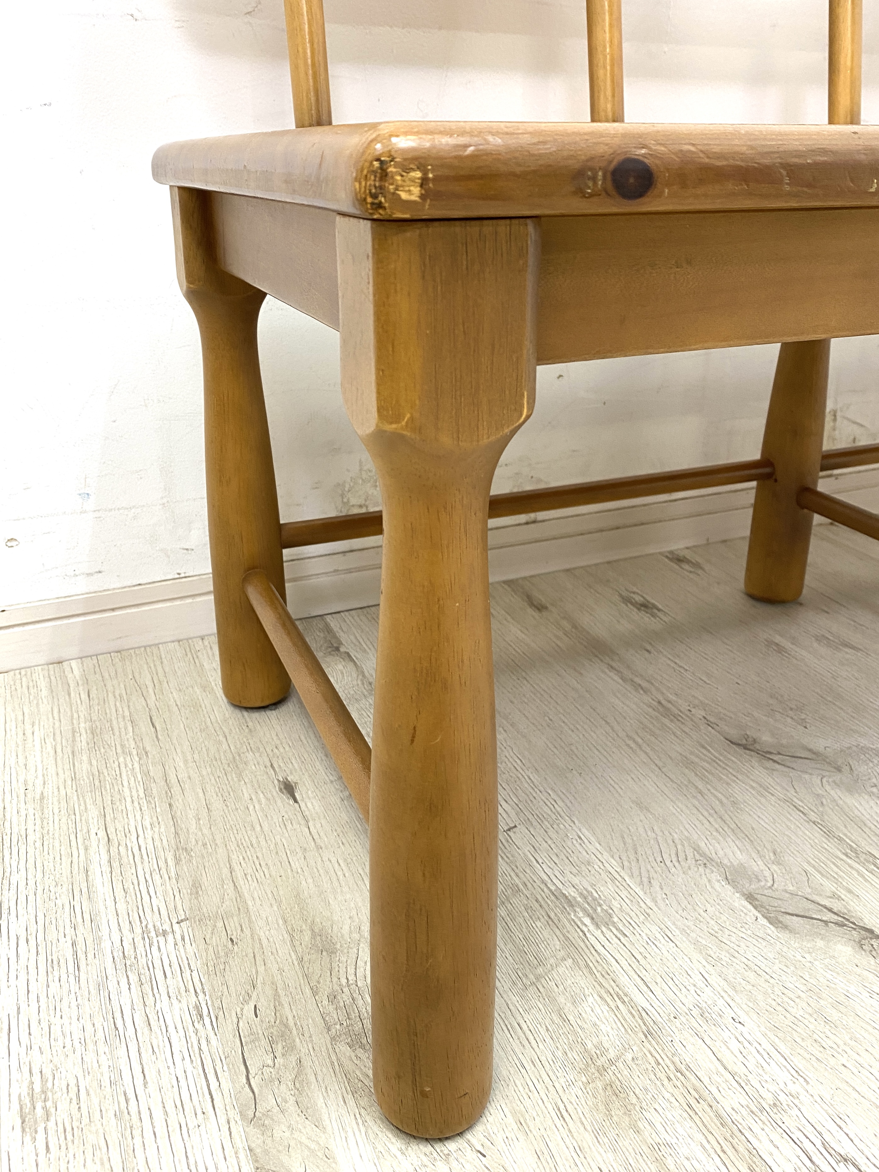 こちらはenfant アンファン ダイニングベンチです。 中古品です。 【enfant アンファン】 1971年に静岡県浜松市で創業したカントリー家具メーカーです。 現在はオリジナル家具の製造を終了し、アーリーアメリカンカントリー家具や雑貨、 ナチュラルスタイルのカントリー家具などを紹介しながら、素朴で温かみのある空間づくりを提案しています。 enfant アンファンより、パイン無垢材を使用したアーリーアメリカン調のダイニングベンチです。 アーリーアメリカンとは、17~18世紀頃の開拓時代のアメリカで流行した建築様式やインテリアデザインです。 別名コロニアル(植民地)様式ともよばれ、当時のヨーロッパの洗練されたテイストと開拓時代のアメリカを彷彿とさせる、 懐かしい雰囲気を併せ持っています。木の持つ自然な模様や節(ふし)を活かした素朴で温かみのある家具は、 どこか懐かしくてほっとするようなインテリアコーディネートにぴったりです。 使っていくうちに飴色へと変化していく、パイン材ならではの風合いが魅力のお品です。 優しいカーブを描く背とスポークのデザインが可愛らしい1脚。座面には丸い窪みがありますので座り心地も良好です。 今回、ダイニングセットとしてお使いいただけるダイニングテーブルやチェアが入荷しています。 セットで購入していただくことで統一感のある空間を演出していただけますし、 人数やスペースに合わせたレイアウトをお楽しみいただけます。 順次出品中ですので、こちらもぜひご検討ください(’25/10/7現在)。 【コンディションについて】 使用感を感じる古いもののため、全体にキズや塗装落ちが見られます。 スポークはやや緩んでいますが、ご使用には問題の無い程度です。 キズなどありますが、使い込まれたアンティーク家具のような良い風合いとなっています。 ダイニングチェアとしてだけでなく、リビングでのサブチェアとしてもおすすめのお品です。 他詳細については下記画像も併せてご参照ください。 ![]() ![]() ![]() ![]() ![]() この機会に是非ご検討ください。皆様のご入札をお待ちしております! 再良市場の他のお品物はこちらから!