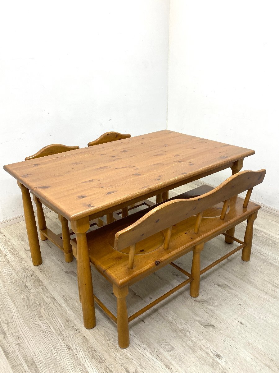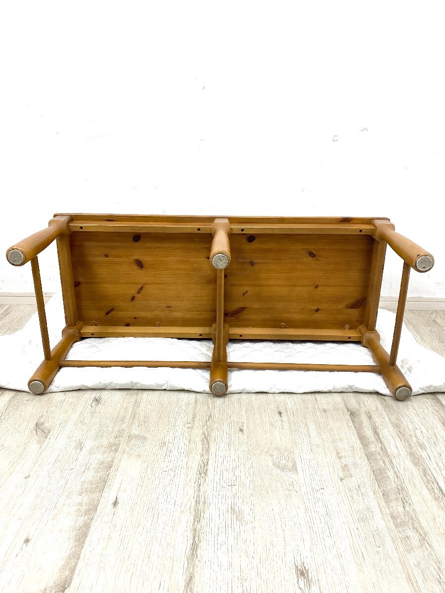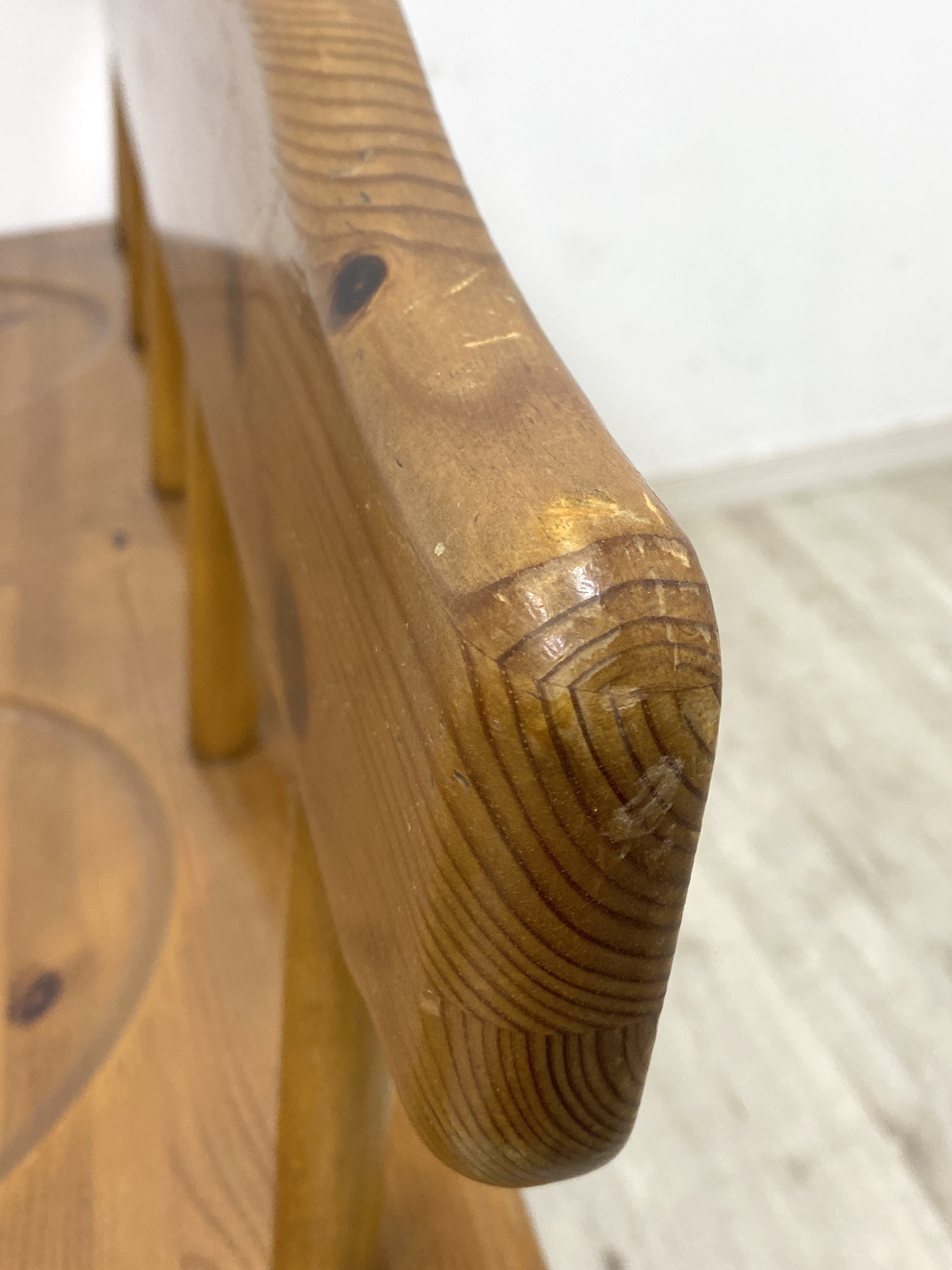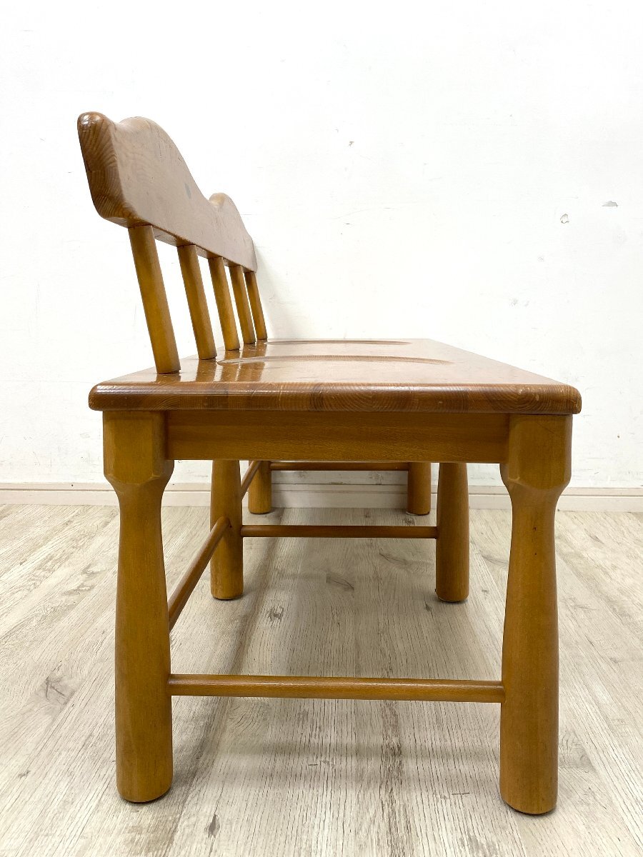 こちらはenfant アンファン ダイニングベンチです。 中古品です。 【enfant アンファン】 1971年に静岡県浜松市で創業したカントリー家具メーカーです。 現在はオリジナル家具の製造を終了し、アーリーアメリカンカントリー家具や雑貨、 ナチュラルスタイルのカントリー家具などを紹介しながら、素朴で温かみのある空間づくりを提案しています。 enfant アンファンより、パイン無垢材を使用したアーリーアメリカン調のダイニングベンチです。 アーリーアメリカンとは、17~18世紀頃の開拓時代のアメリカで流行した建築様式やインテリアデザインです。 別名コロニアル(植民地)様式ともよばれ、当時のヨーロッパの洗練されたテイストと開拓時代のアメリカを彷彿とさせる、 懐かしい雰囲気を併せ持っています。木の持つ自然な模様や節(ふし)を活かした素朴で温かみのある家具は、 どこか懐かしくてほっとするようなインテリアコーディネートにぴったりです。 使っていくうちに飴色へと変化していく、パイン材ならではの風合いが魅力のお品です。 優しいカーブを描く背とスポークのデザインが可愛らしい1脚。座面には丸い窪みがありますので座り心地も良好です。 今回、ダイニングセットとしてお使いいただけるダイニングテーブルやチェアが入荷しています。 セットで購入していただくことで統一感のある空間を演出していただけますし、 人数やスペースに合わせたレイアウトをお楽しみいただけます。 順次出品中ですので、こちらもぜひご検討ください(’25/10/7現在)。 【コンディションについて】 使用感を感じる古いもののため、全体にキズや塗装落ちが見られます。 スポークはやや緩んでいますが、ご使用には問題の無い程度です。 キズなどありますが、使い込まれたアンティーク家具のような良い風合いとなっています。 ダイニングチェアとしてだけでなく、リビングでのサブチェアとしてもおすすめのお品です。 他詳細については下記画像も併せてご参照ください。 ![]() ![]() ![]() ![]() ![]() この機会に是非ご検討ください。皆様のご入札をお待ちしております! 再良市場の他のお品物はこちらから!