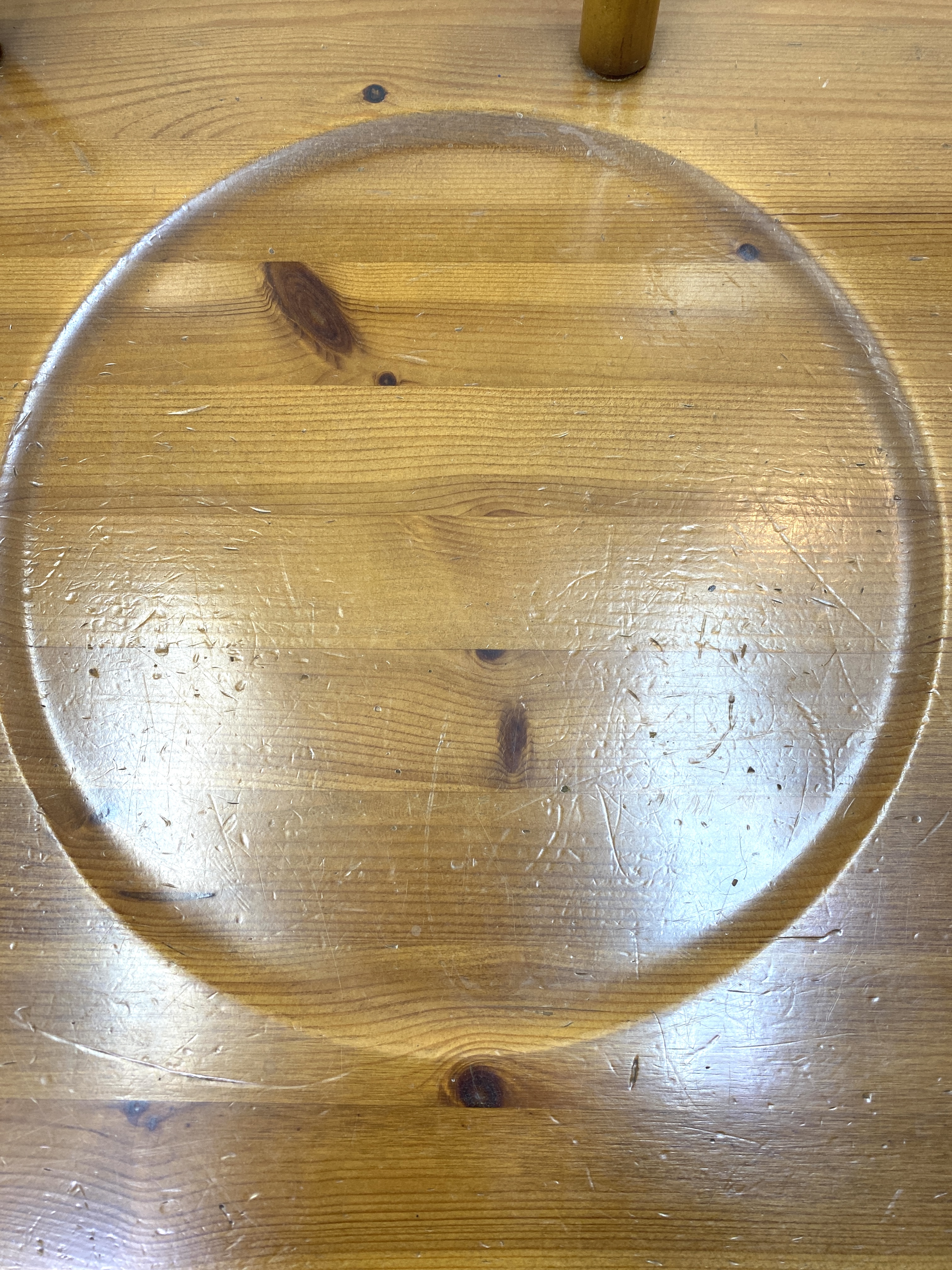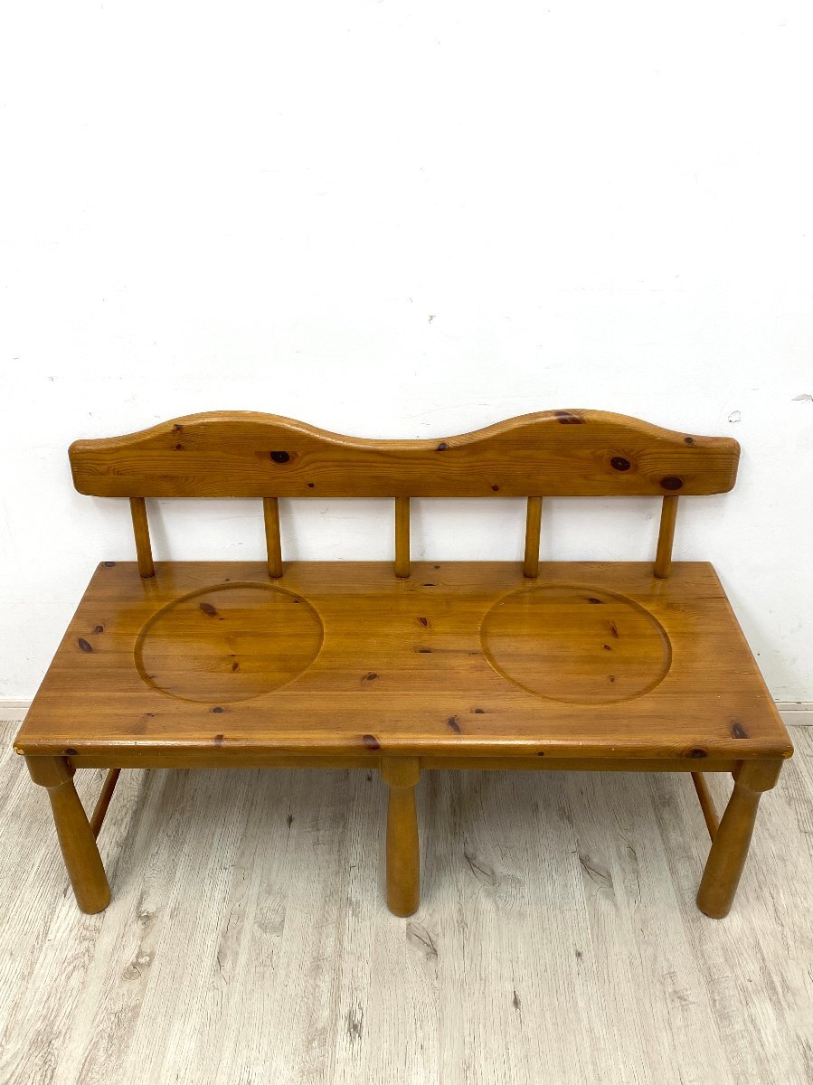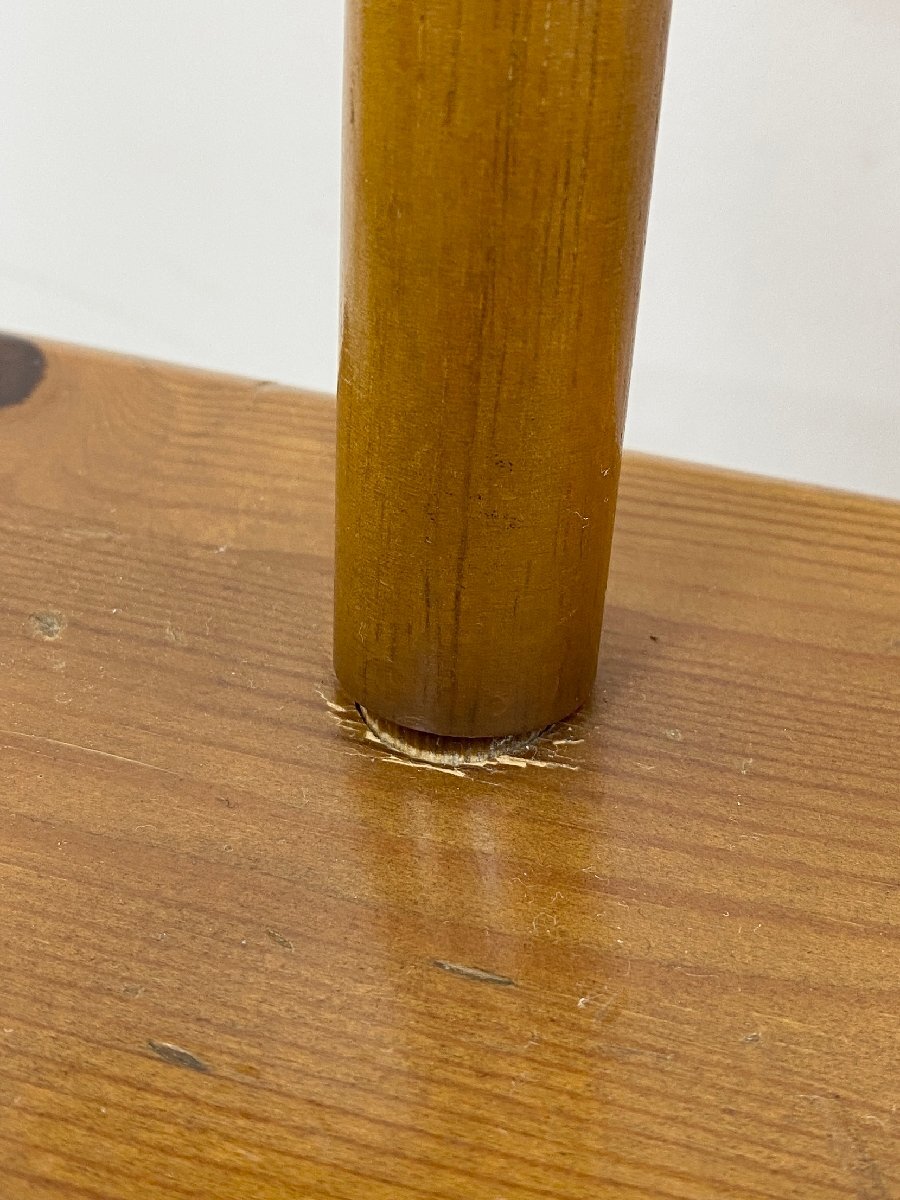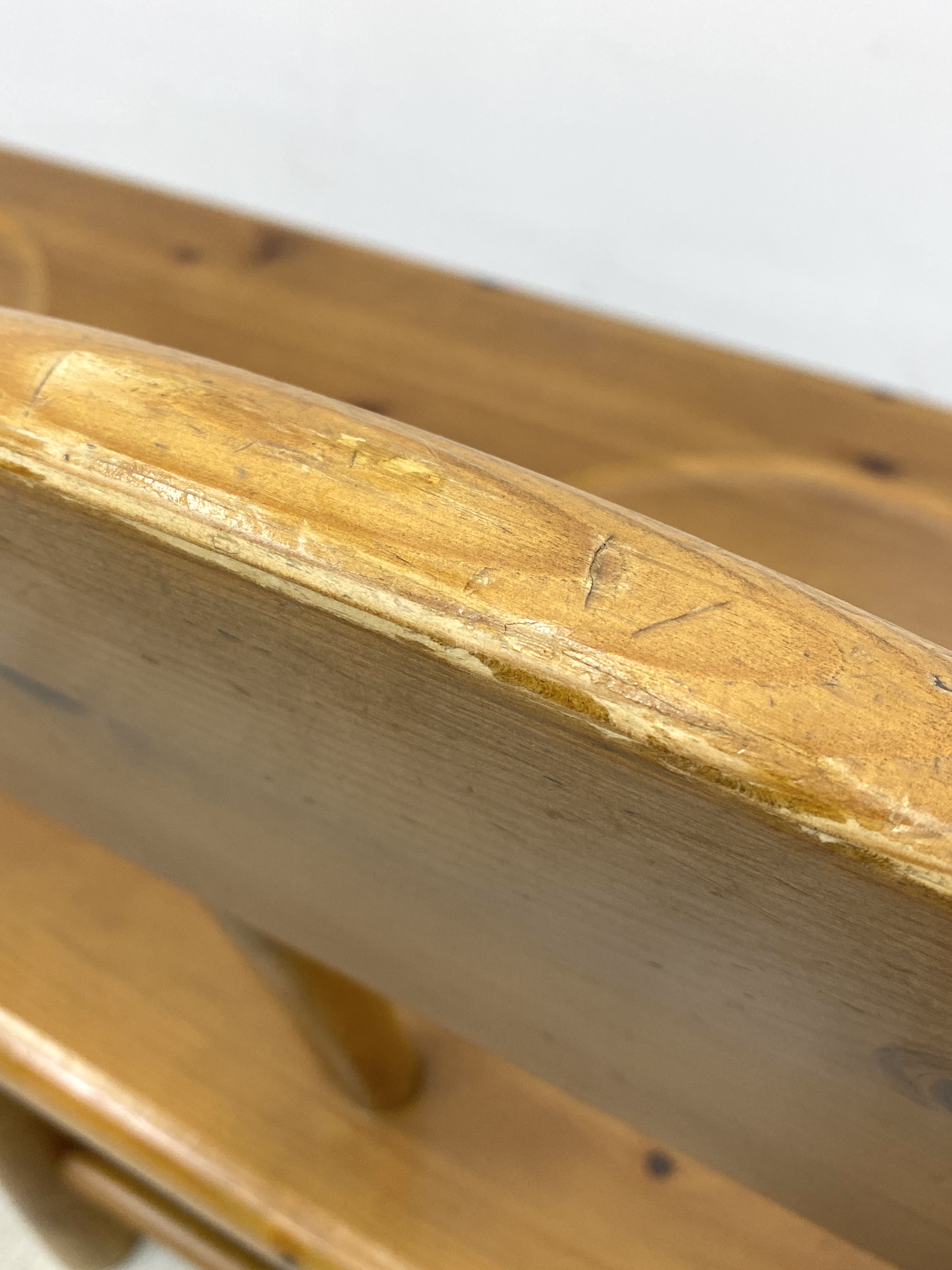こちらはenfant アンファン ダイニングベンチです。 中古品です。 【enfant アンファン】 1971年に静岡県浜松市で創業したカントリー家具メーカーです。 現在はオリジナル家具の製造を終了し、アーリーアメリカンカントリー家具や雑貨、 ナチュラルスタイルのカントリー家具などを紹介しながら、素朴で温かみのある空間づくりを提案しています。 enfant アンファンより、パイン無垢材を使用したアーリーアメリカン調のダイニングベンチです。 アーリーアメリカンとは、17~18世紀頃の開拓時代のアメリカで流行した建築様式やインテリアデザインです。 別名コロニアル(植民地)様式ともよばれ、当時のヨーロッパの洗練されたテイストと開拓時代のアメリカを彷彿とさせる、 懐かしい雰囲気を併せ持っています。木の持つ自然な模様や節(ふし)を活かした素朴で温かみのある家具は、 どこか懐かしくてほっとするようなインテリアコーディネートにぴったりです。 使っていくうちに飴色へと変化していく、パイン材ならではの風合いが魅力のお品です。 優しいカーブを描く背とスポークのデザインが可愛らしい1脚。座面には丸い窪みがありますので座り心地も良好です。 今回、ダイニングセットとしてお使いいただけるダイニングテーブルやチェアが入荷しています。 セットで購入していただくことで統一感のある空間を演出していただけますし、 人数やスペースに合わせたレイアウトをお楽しみいただけます。 順次出品中ですので、こちらもぜひご検討ください(’25/10/7現在)。 【コンディションについて】 使用感を感じる古いもののため、全体にキズや塗装落ちが見られます。 スポークはやや緩んでいますが、ご使用には問題の無い程度です。 キズなどありますが、使い込まれたアンティーク家具のような良い風合いとなっています。 ダイニングチェアとしてだけでなく、リビングでのサブチェアとしてもおすすめのお品です。 他詳細については下記画像も併せてご参照ください。 ![]() ![]() ![]() ![]() ![]() この機会に是非ご検討ください。皆様のご入札をお待ちしております! 再良市場の他のお品物はこちらから!