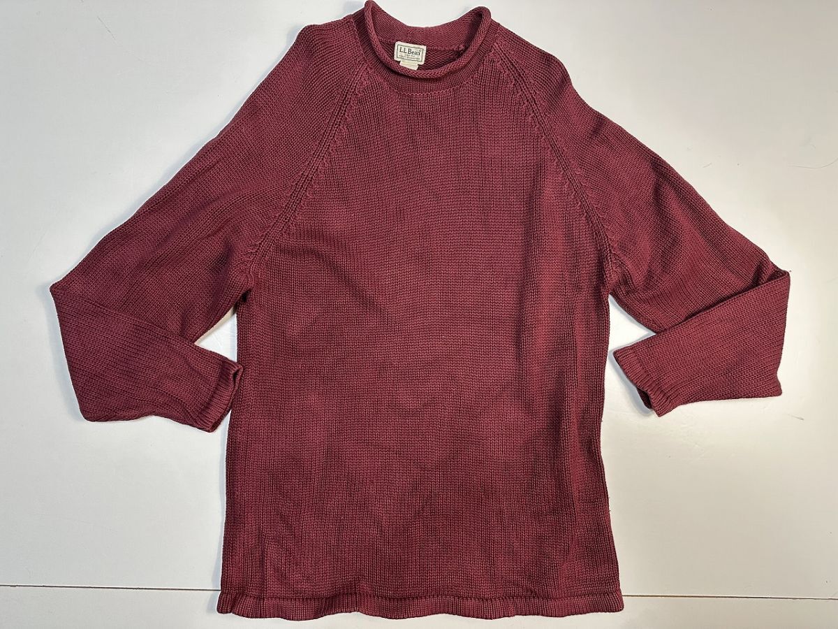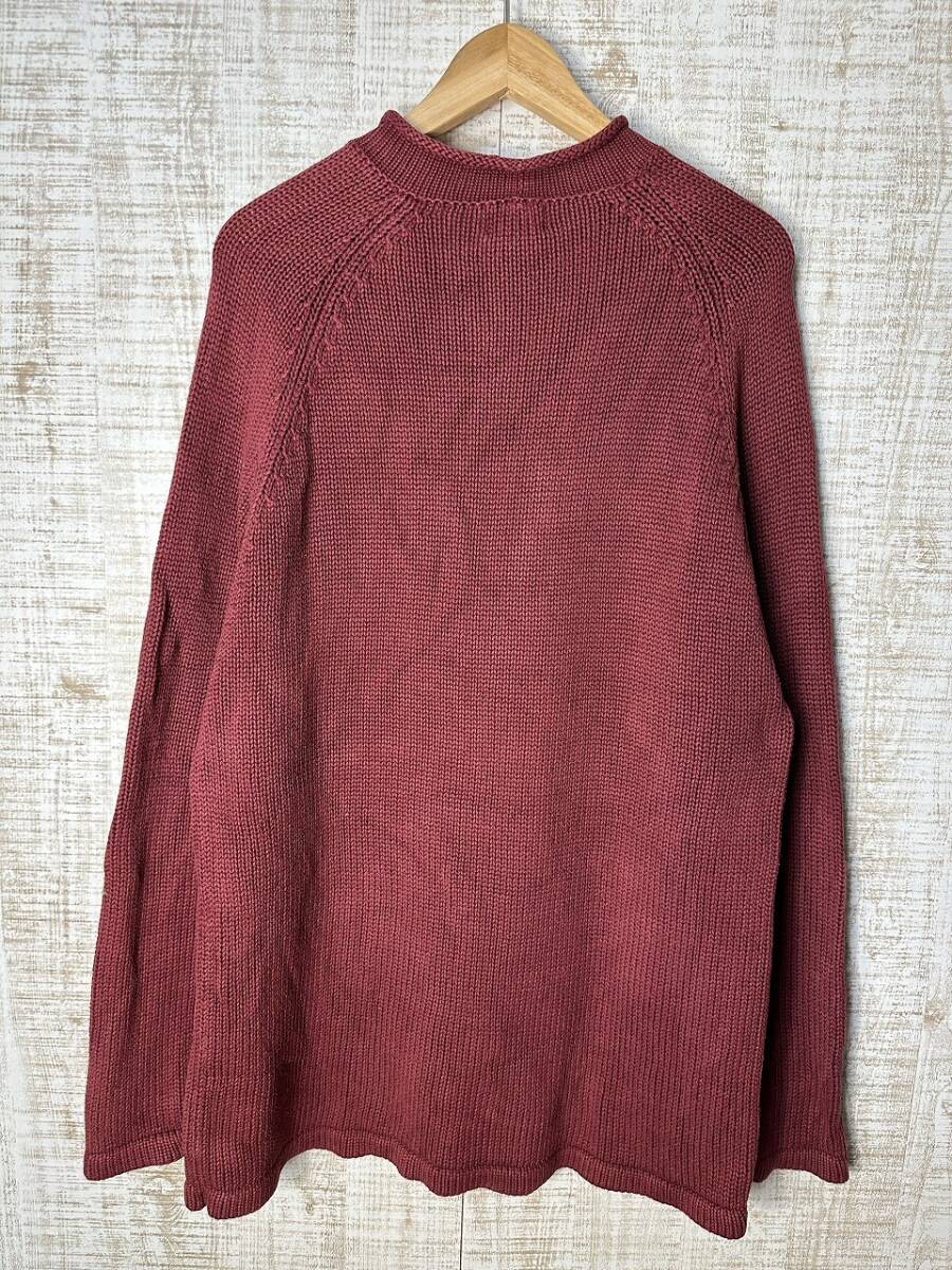 ●US USED L.L.Bean エルエルビーン コットンニット セーター ハイネック ミドルゲージ エンジ赤【L】
