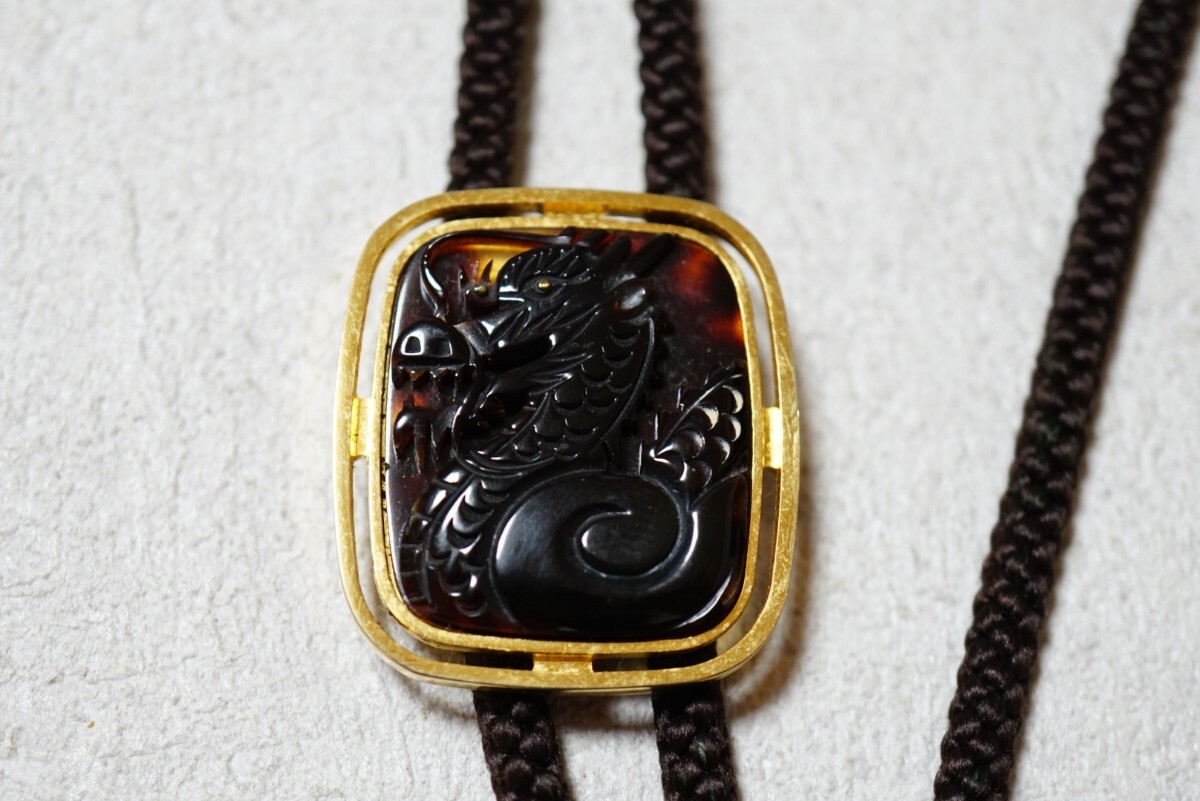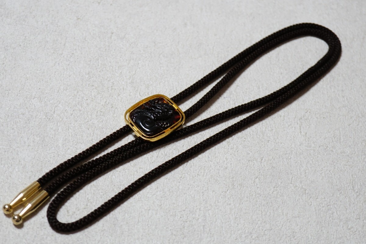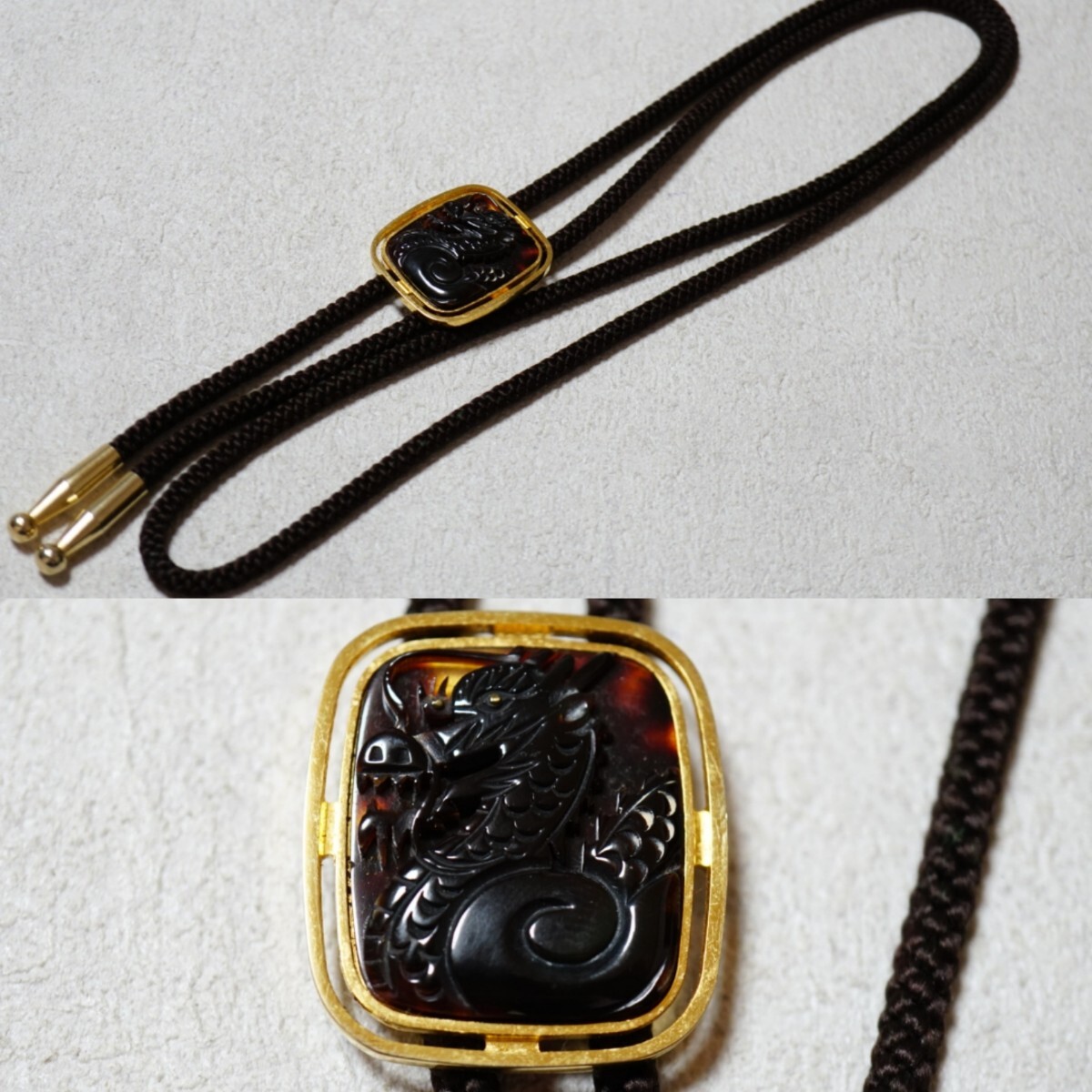 716 本鼈甲 べっ甲 彫刻 ループタイ ネックレス ヴィンテージ アクセサリー べっこう 首飾り ペンダント 装飾品