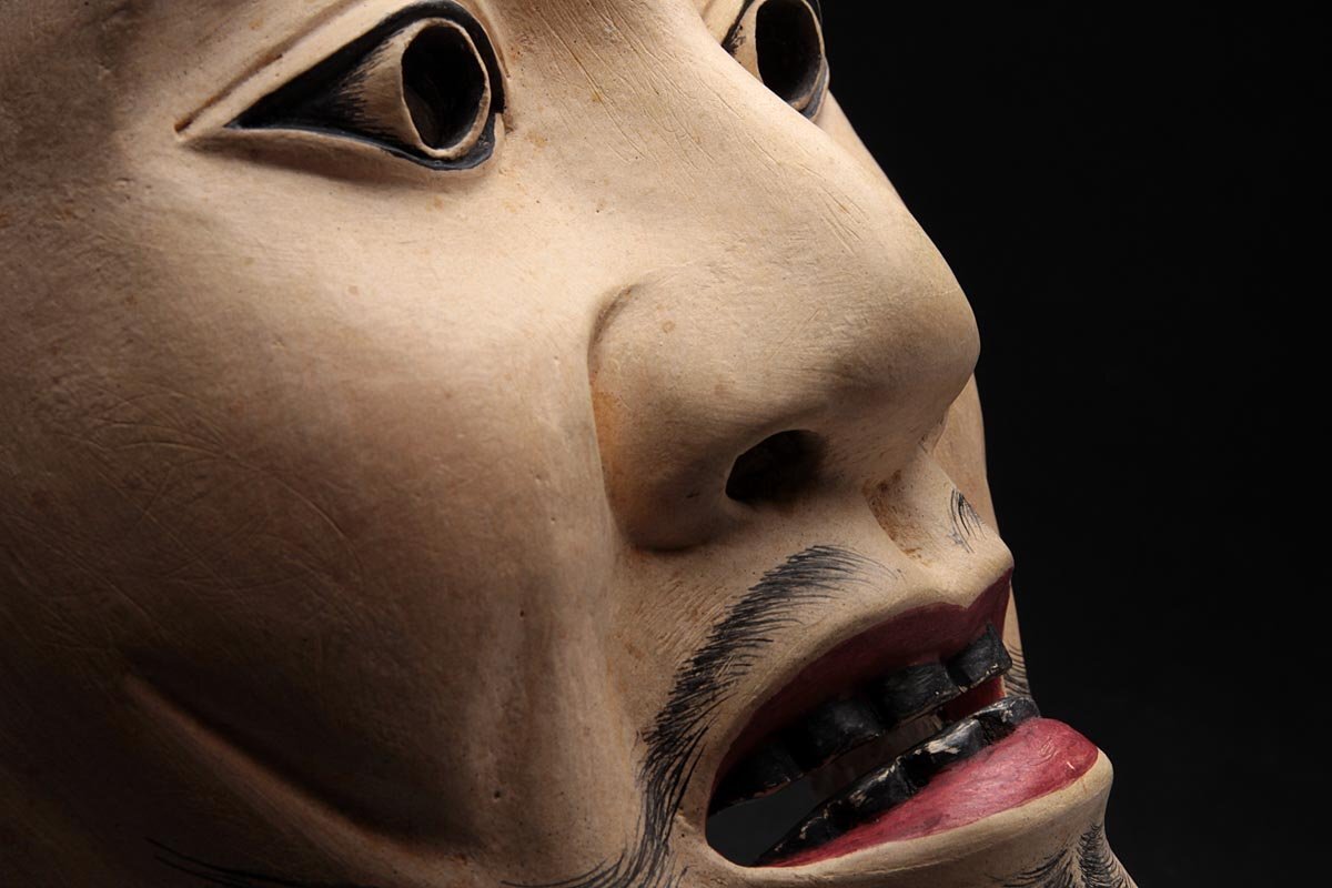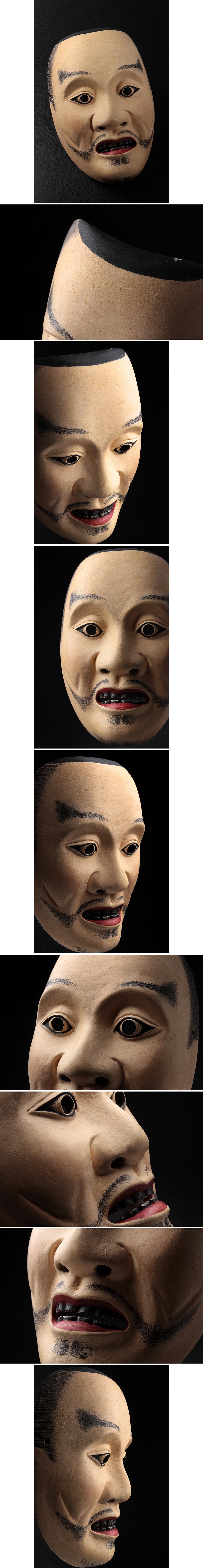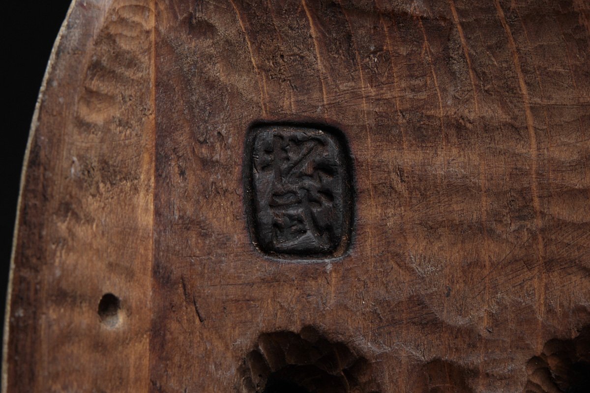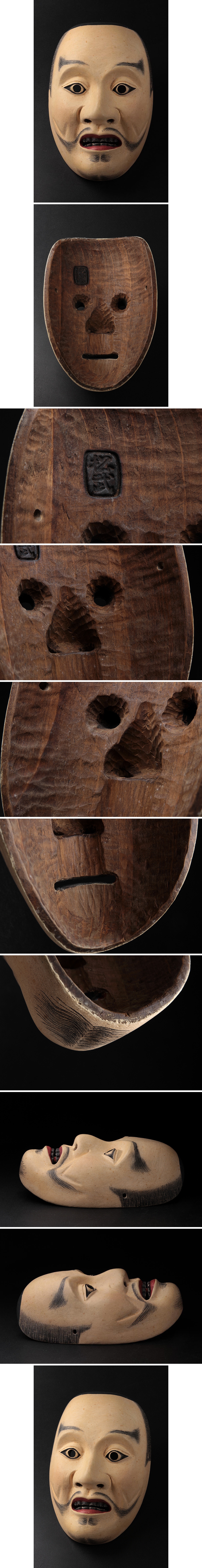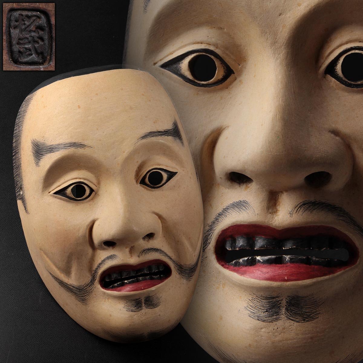 ◆ 時代【松武 作 焼印】・木彫彩色能面「平太」・「武将荏柄平太胤長/男面」神楽面 狂言面 伝統工芸 伝統芸能 古美術 ◆