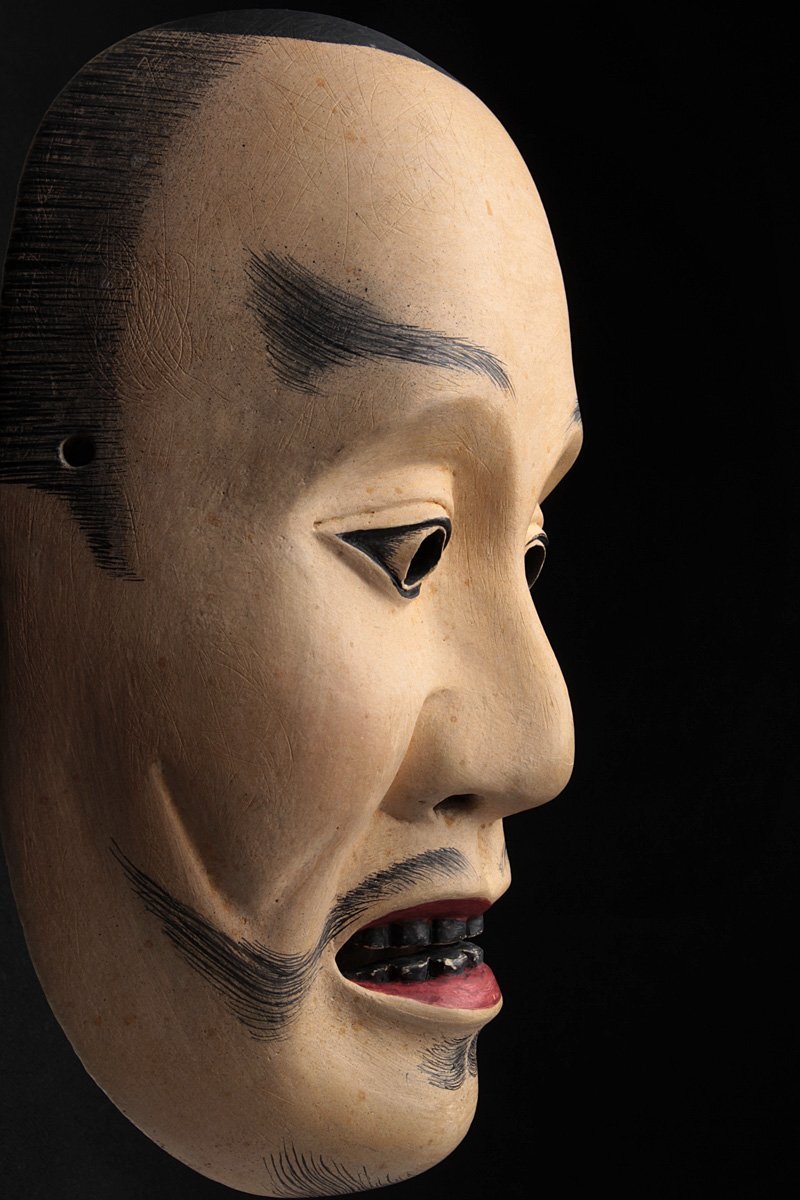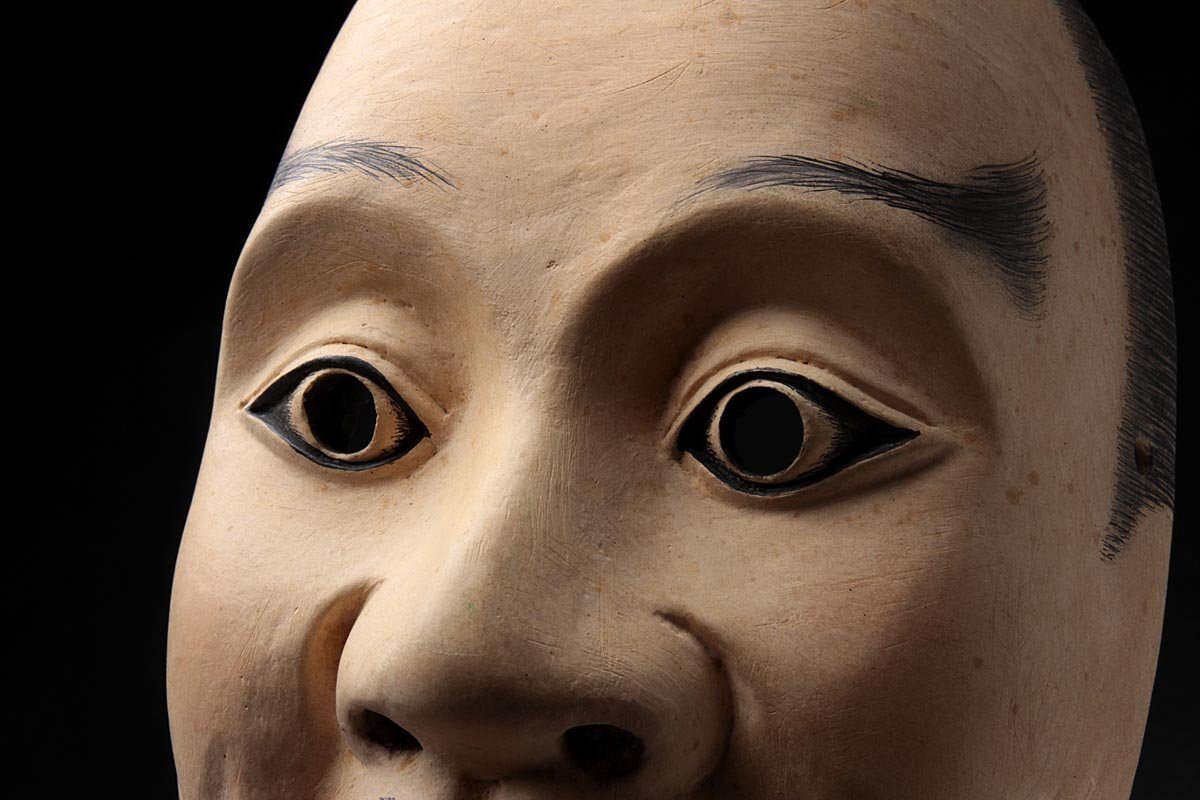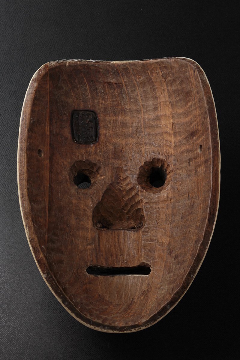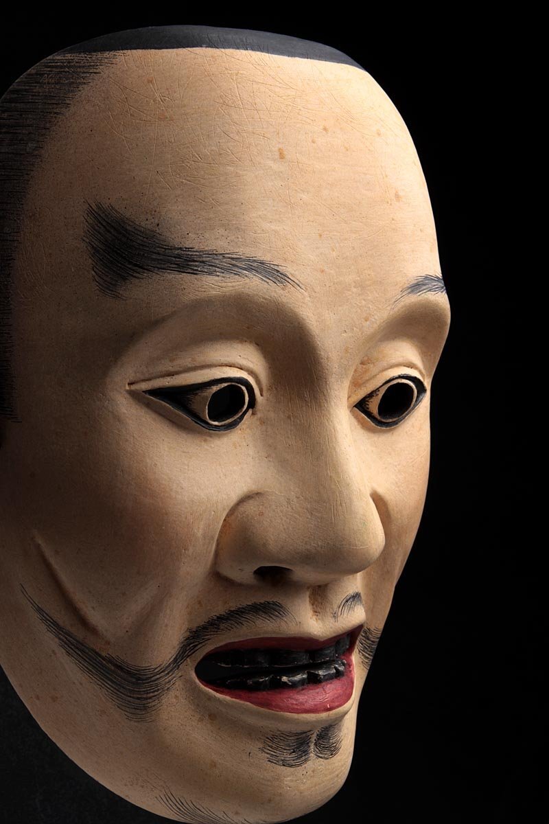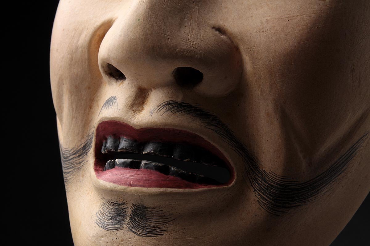 ◆ 時代【松武 作 焼印】・木彫彩色能面「平太」・「武将荏柄平太胤長/男面」神楽面 狂言面 伝統工芸 伝統芸能 古美術 ◆