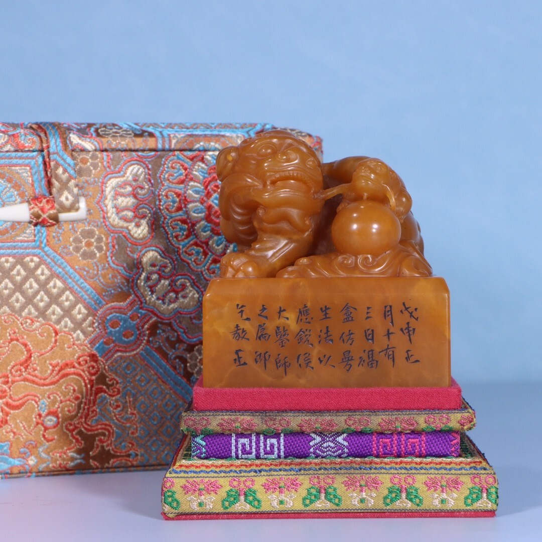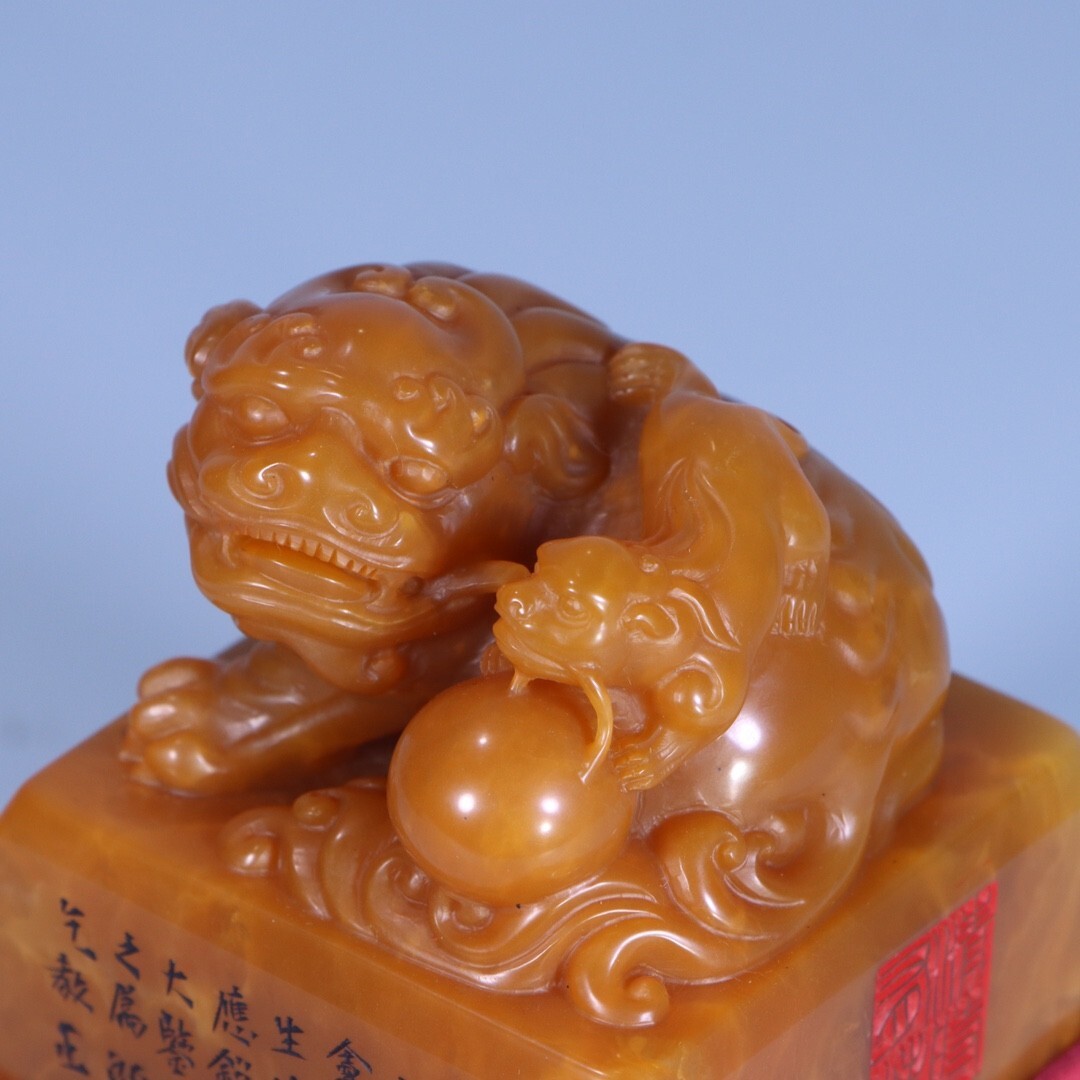 「清 福あん 老寿山石 田黄石彫り 太師少師鈕印章」極細工 擺件 古賞物 中国古美術 旧蔵出