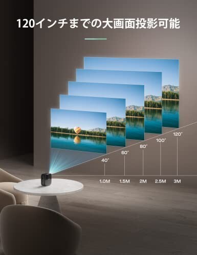 リア解像度:480P 最大解像度:1080P 輝度:100 ANSI コントラスト比:2000:1 投写距離:0.3~4m 投写サイズ:32~176 インチ 推薦投写距離:1.2~1.5m