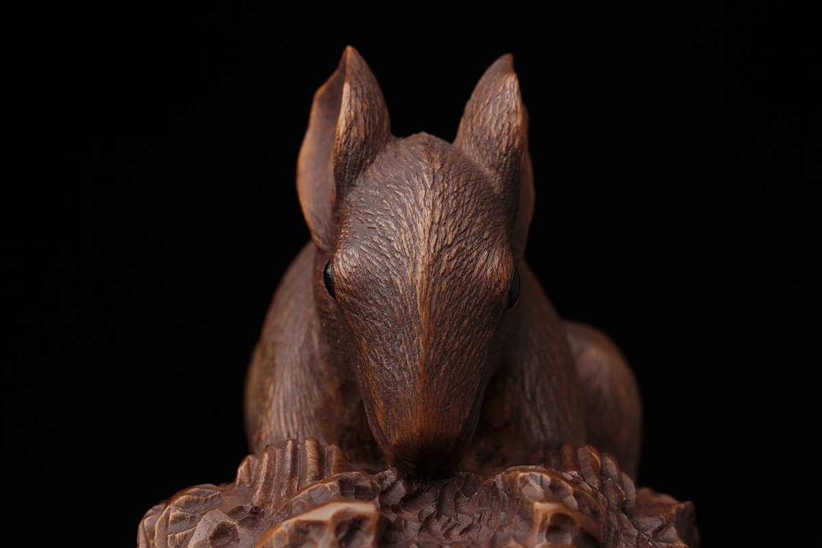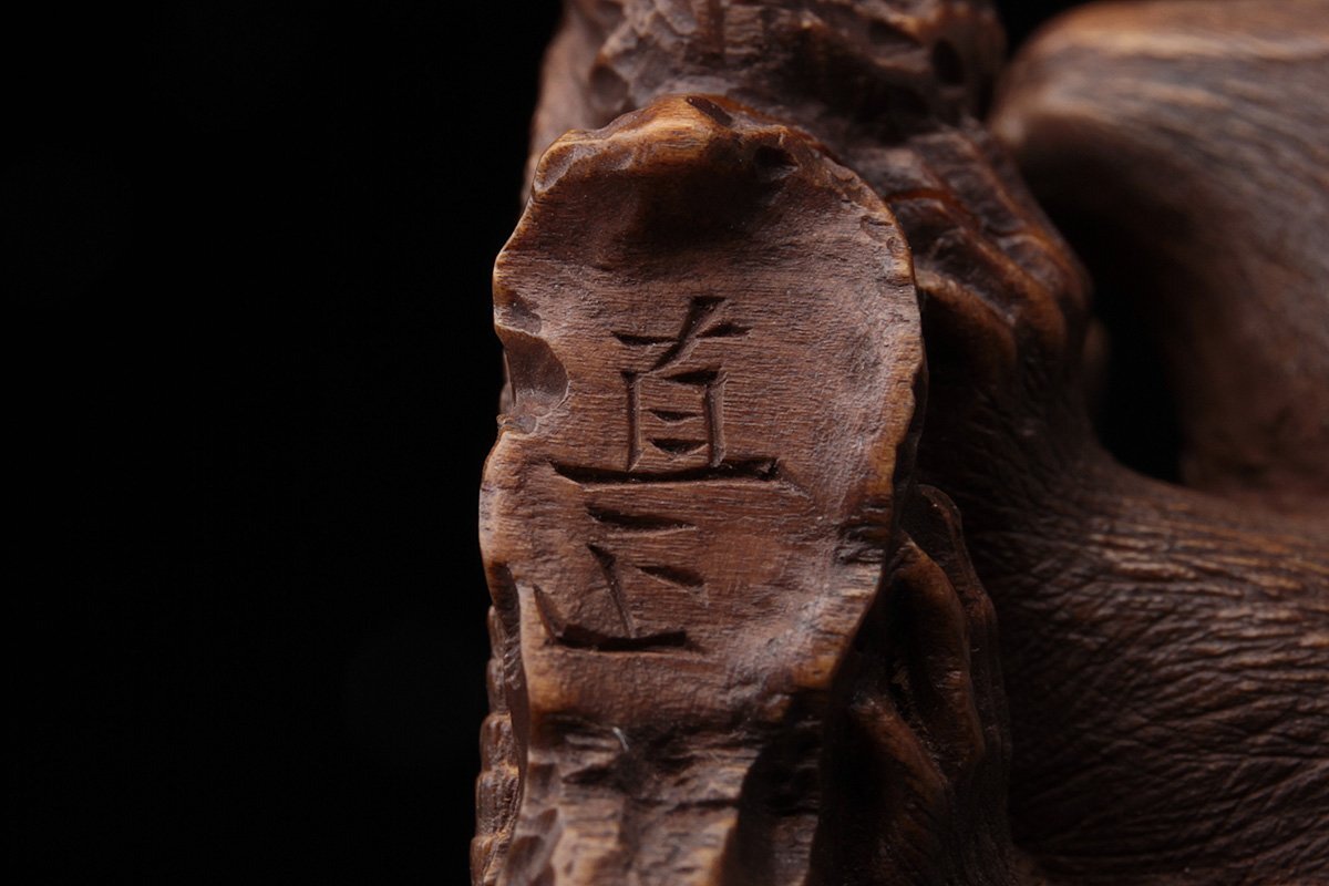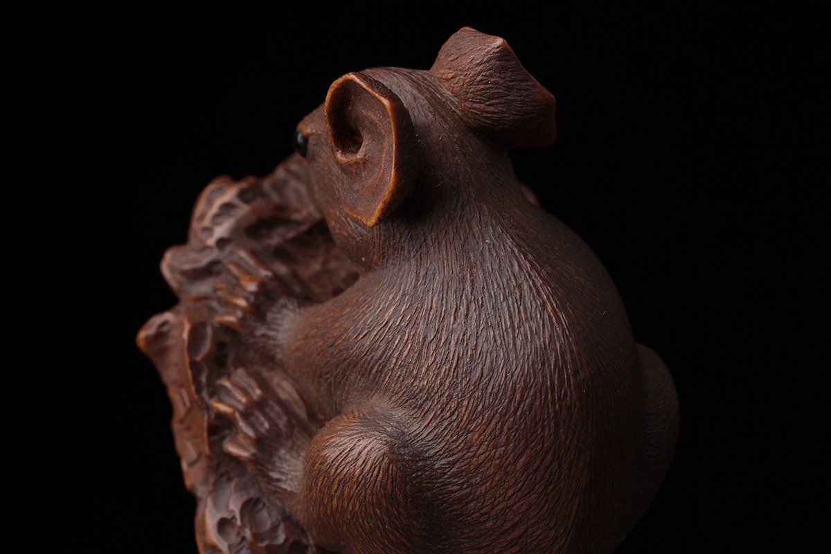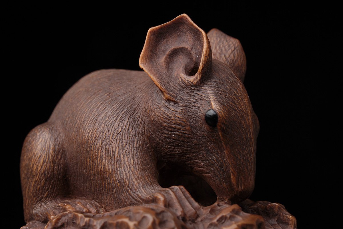 ◆ 時代提げ物【直正 銘】古黄楊木彫「落花生に鼠」根付・古柘植根付・形彫根付 印籠 煙草入 装飾品 古美術 ◆