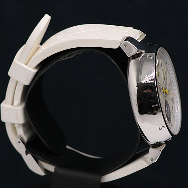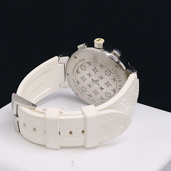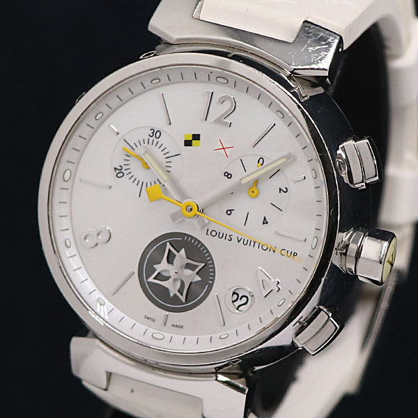 1円 稼働 ルイヴィトン Q11BA ホワイトシェル QZ タンブール ラブリーカップ クロノグラフ メンズ腕時計 0008800 11RKT KMR