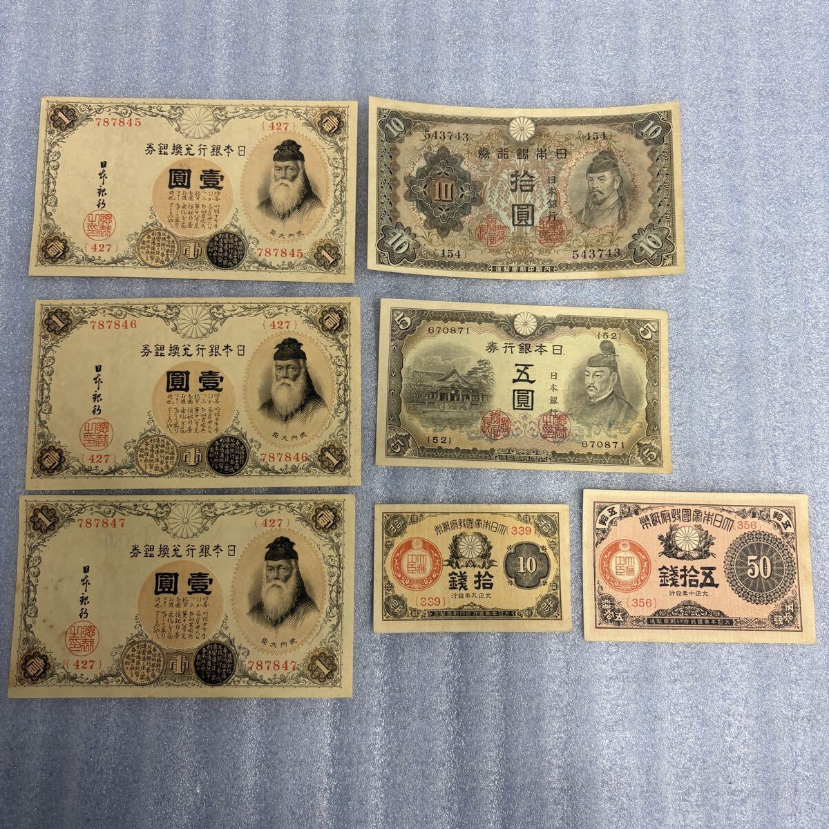 ★旧紙幣 7枚セット 全てピン札 一円札3枚連番 十円札 五円札 十銭札 五十銭札